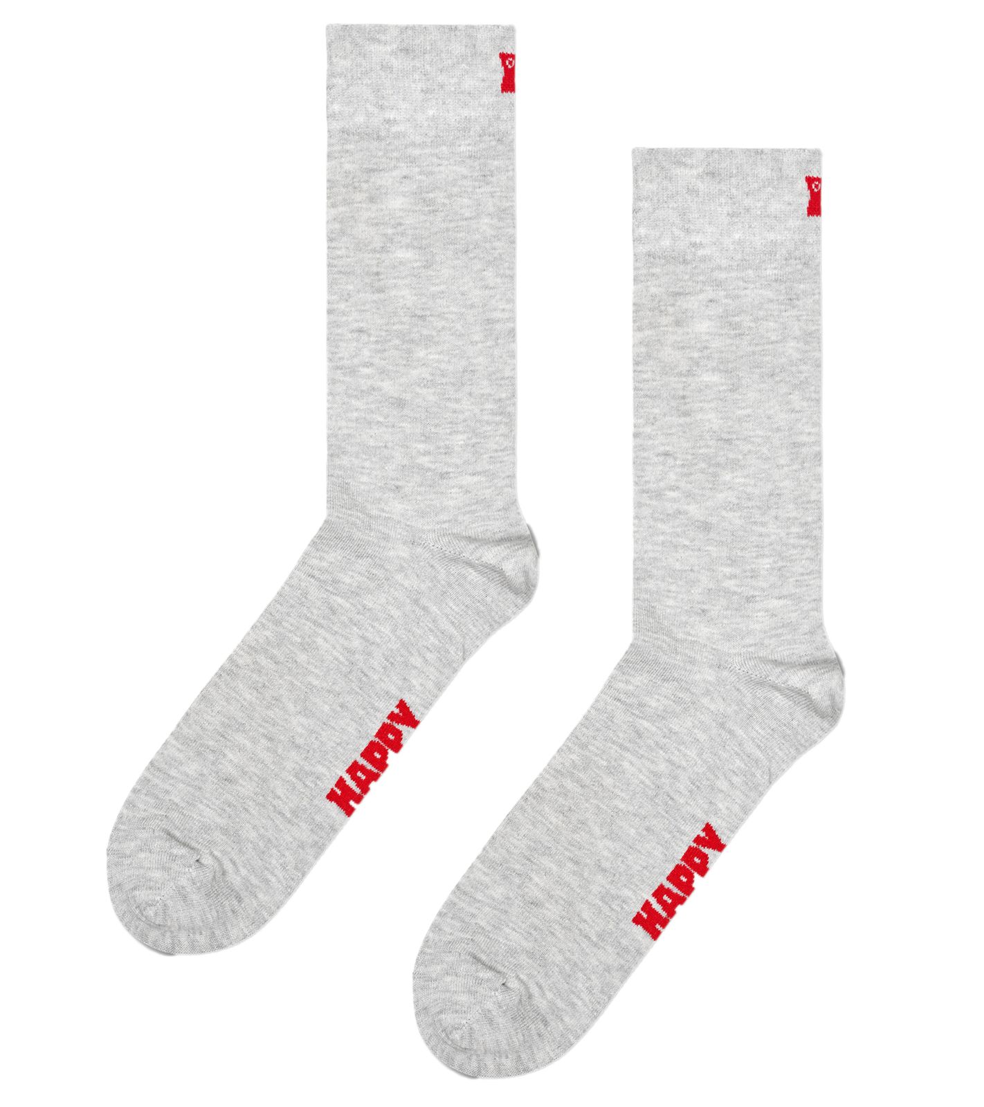 1 Paar Happy Socks Solid Herren Crew-Socken Bio-Baumwoll-Socken mit Schriftzug- und Logo-Print Alltags-Strümpfe P001007 Grau/Rot