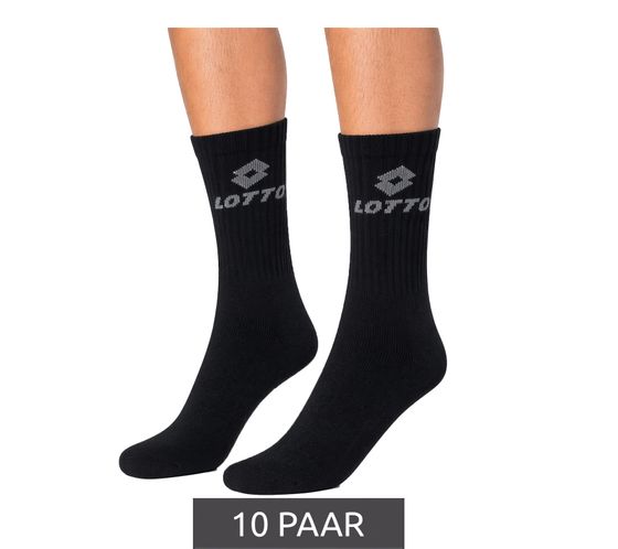 10 Paar LOTTO Sport-Socken Damen und Herren Trainings-Socken Tennis-Strümpfe Baumwoll-Socken Schwarz