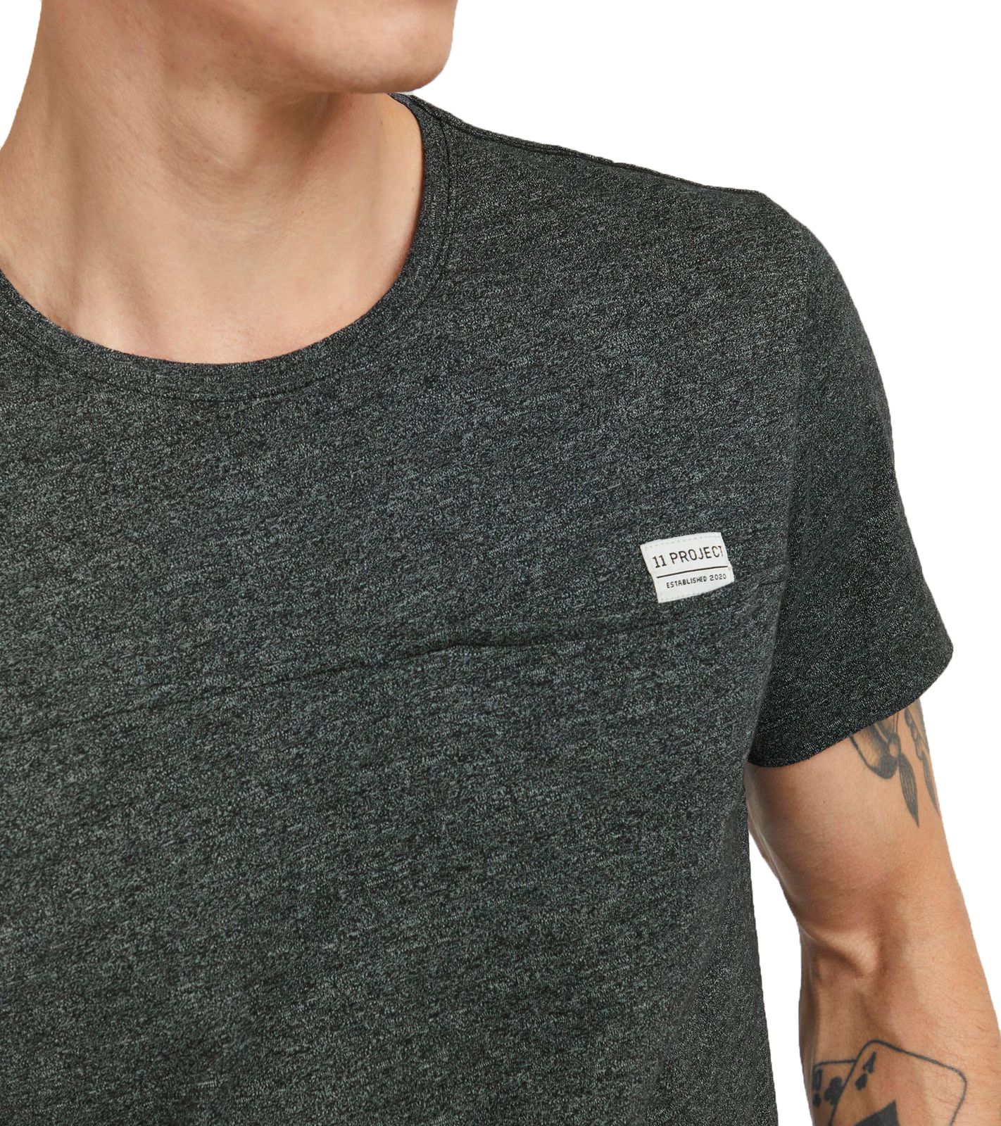 11 PROJECT Santo Herren Baumwoll-Shirt T-Shirt meliertes Sommer-Shirt mit Brusttasche 20715236 ME Schwarz, Rostrot oder Blau