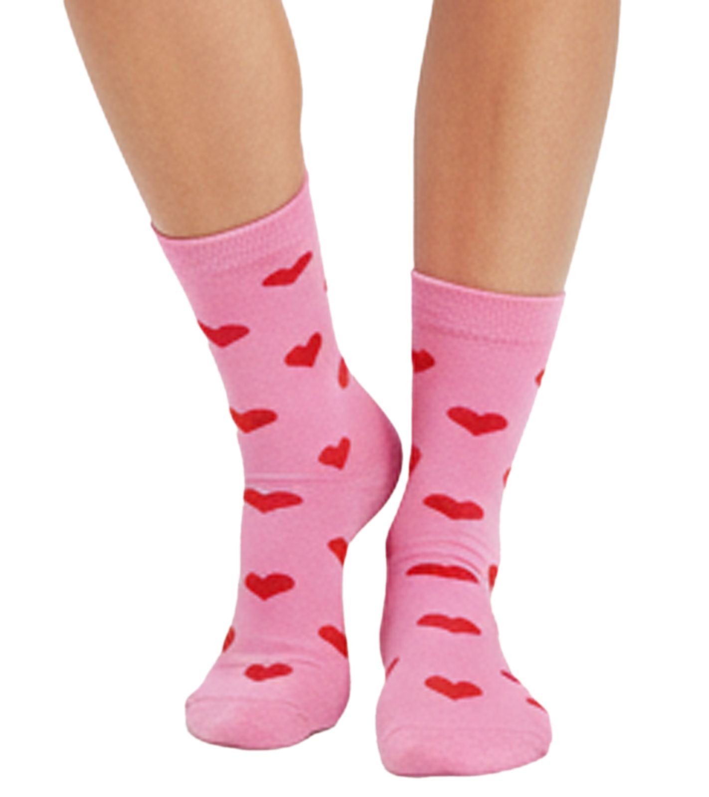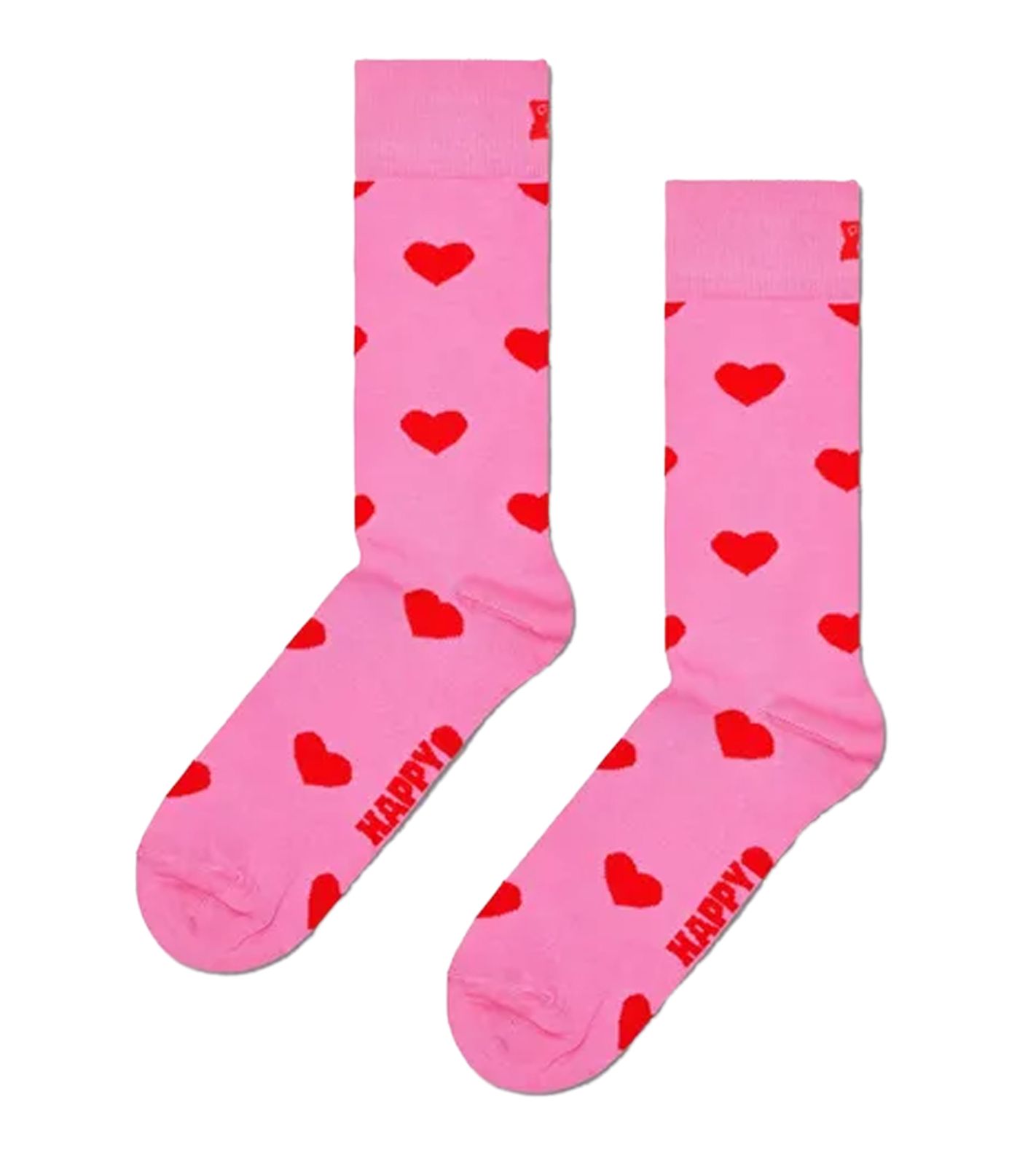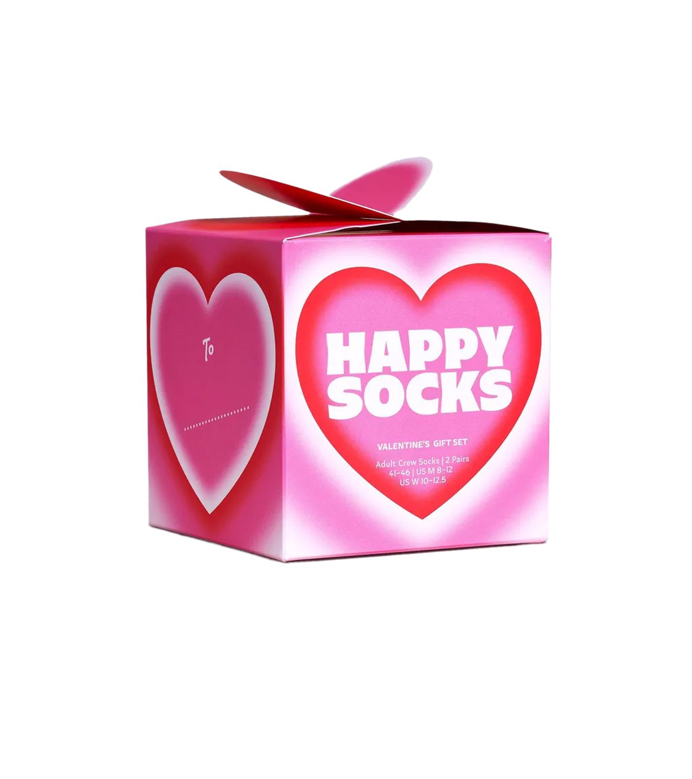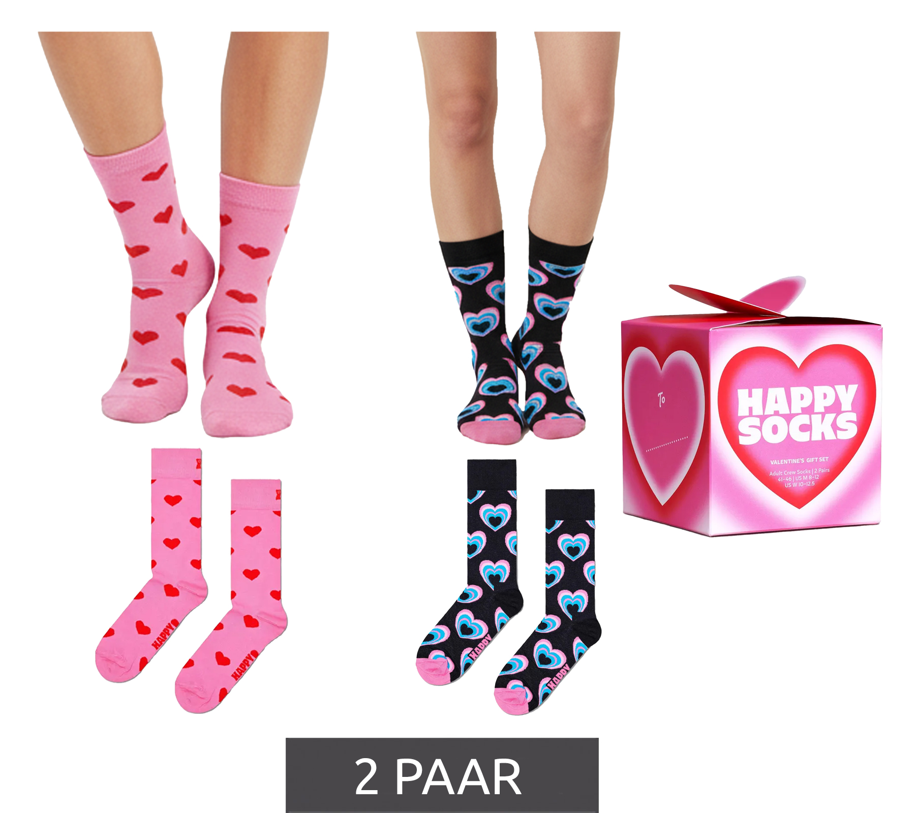 2 Paar Happy Socks Valentine’s Damen Socken in Geschenkbox mit Allover-Herzen-Print Baumwoll-Socken Alltags-Strümpfe Valentinstag P001717 Schwarz/Rosa/Bunt