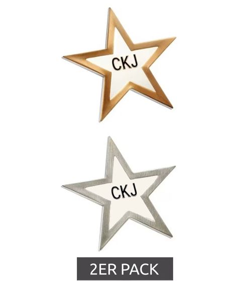 2er Pack Calvin Klein Anstecknadeln im Sternen-Design Edelstahl-Pins-Up Emaille-Broschen KJJNDH200200 Silber/Gold/Weiß