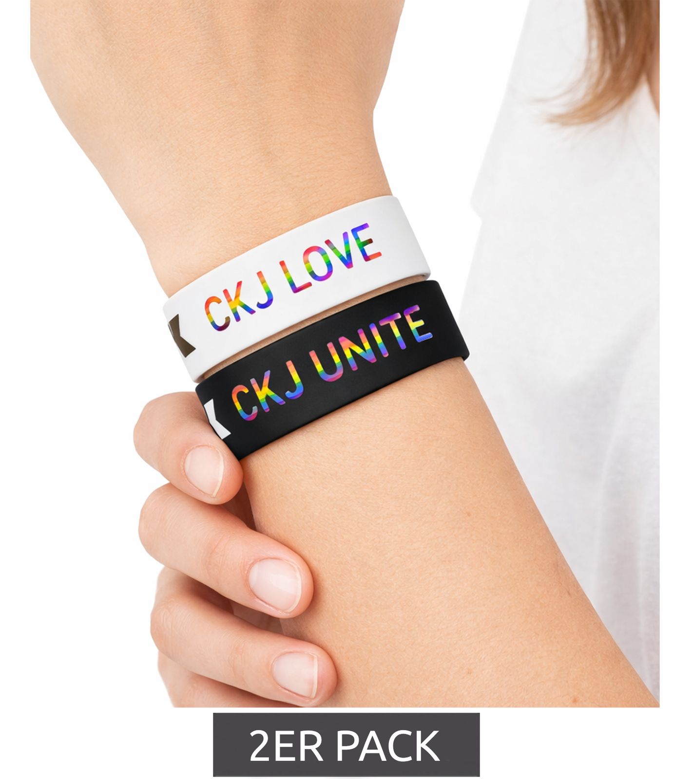 2er Pack Calvin Klein Slap-Armbänder mit "CKJ Unite" & "CKJ Love"-Schriftzug Arm-Schmuck 20,5 cm KJJLDB850300 Schwarz/Weiß