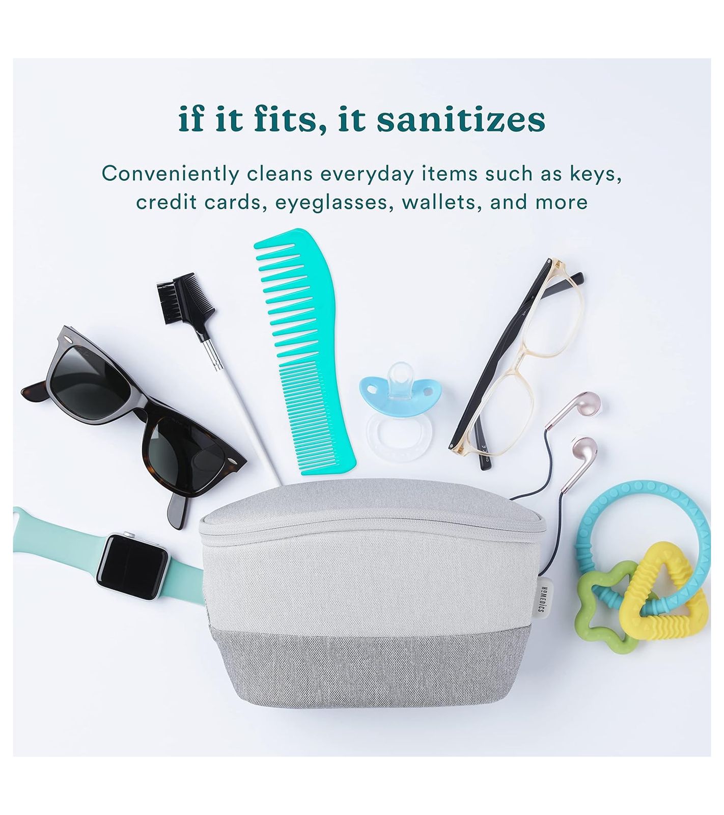 • Der HoMedics UV-Clean Tragbare Desinfektionsbeutel desinfiziert Ihr Handy und andere persönliche Gegenstände