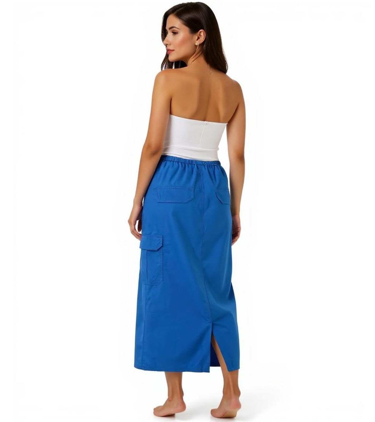 2er Sparpack Aniston CASUAL Damen Cargo-Rock Sommer-Rock Midi-Länge Baumwoll-Rock mit Gummizug 77100947 Blau
