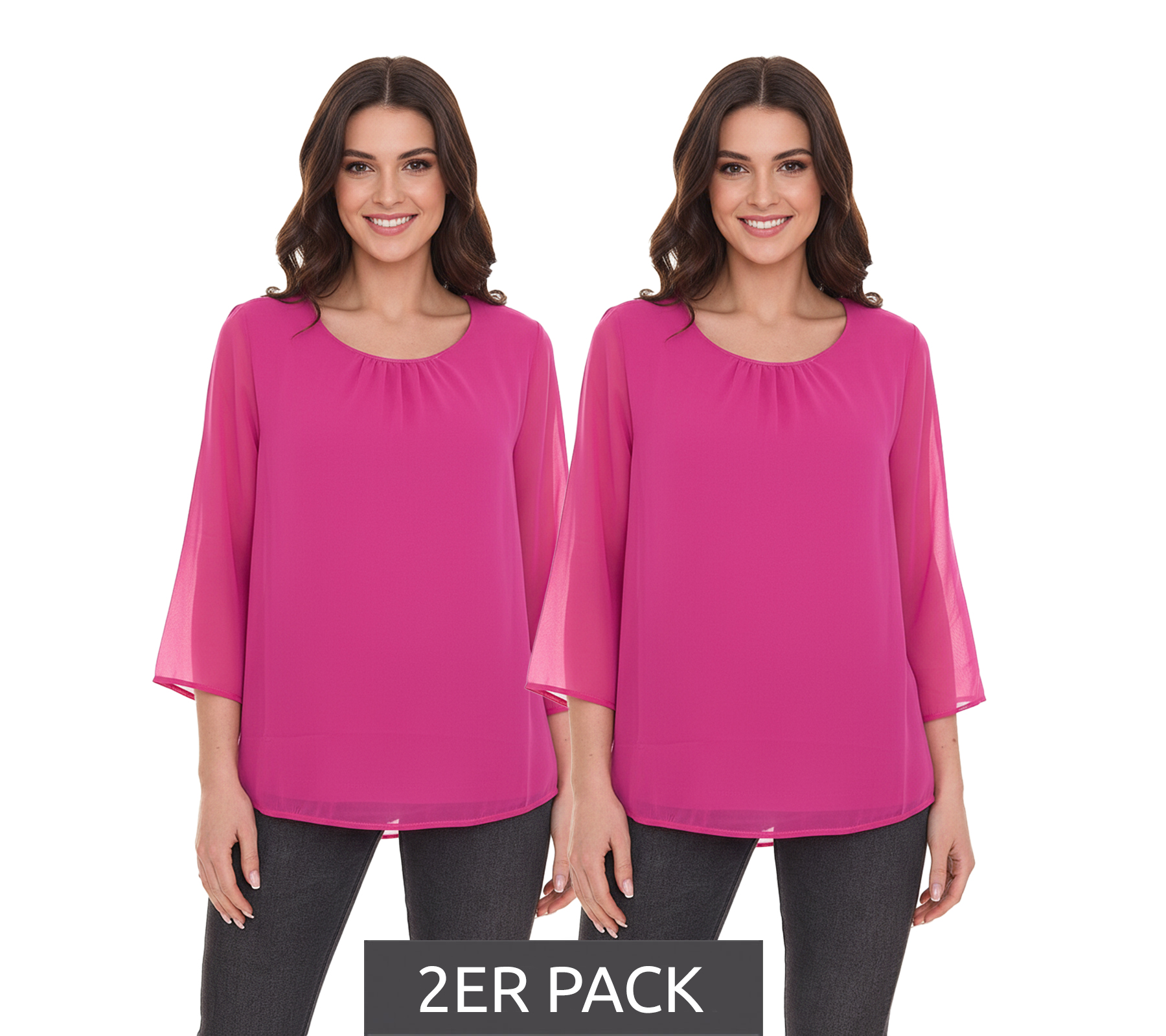 2er Sparpack Aniston SELECTED Damen modische Sommer-Bluse mit 3/4-Ärmeln 16113300 Pink