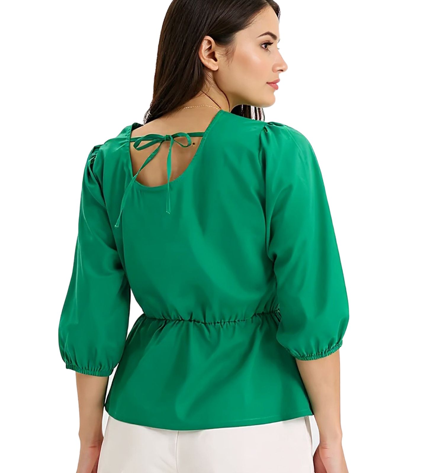2er Sparpack Damen Bluse Rundhals-Bluse mit 3/4 Ärmeln und Taillengummi Baumwoll-Bluse 950069 Grün