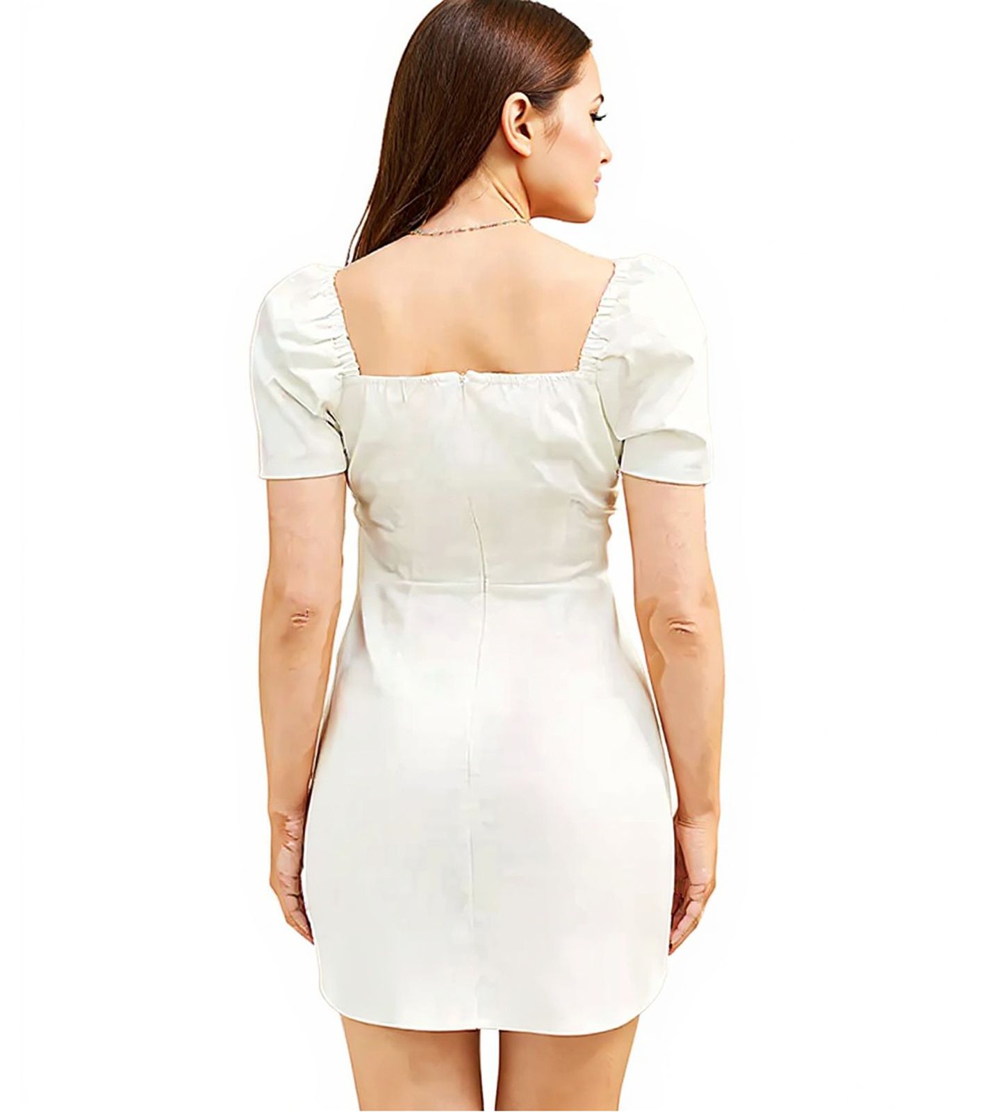 2er Sparpack Damen Puffärmelkleid  Strand-Kleid mit Baumwollanteil Midi-Kleid 973350 Weiß
