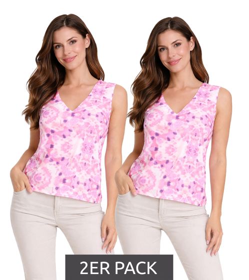 2er Sparpack ONLY ONLALMA Damen Sommer-Top im Batik Look ärmelloses Freizeit-Shirt mit tiefem Ausschnitt 92042750 Rosa/Lila/Weiß