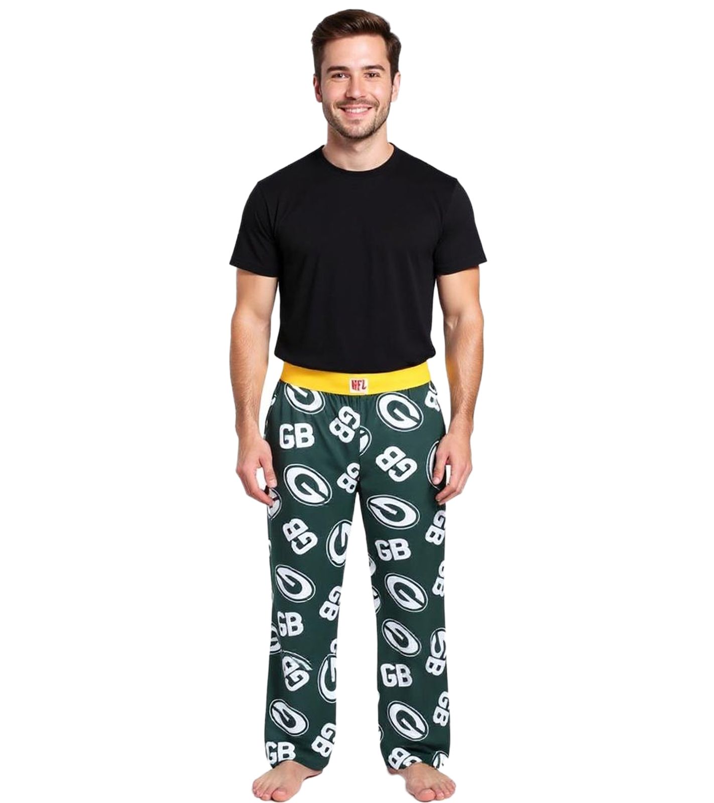 2er Sparpack RE:COVERED X NFL Green Bay Packers Loungepants Herren Schlafanzug-Hose mit Team-Logo Baumwolle Pyjama-Hose RCNFL1398 Grün