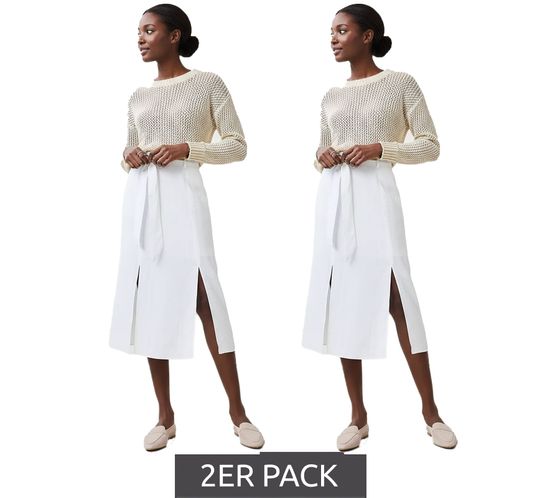 2er Sparpack romantischer Damen Sommer-Rock mit Bindegürtel aus reinem Leinen Midi-Rock 905991 Weiß