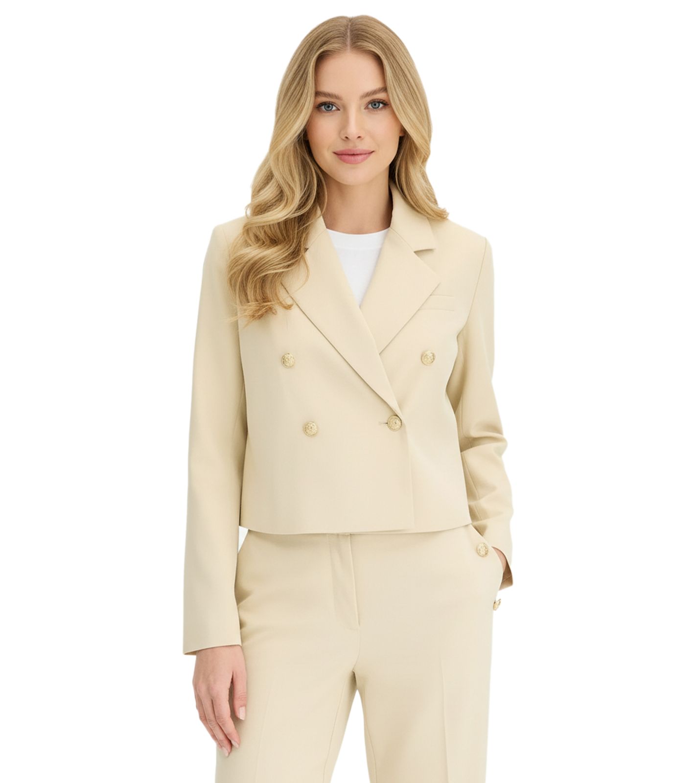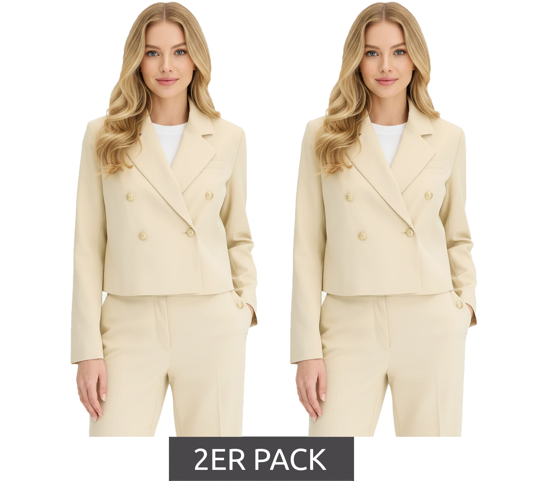 2er Sparpack stillvoller Kurzblazer für Damen mit Schmuckknöpfen Ausgeh-Blazer Business-Blazer 950017 Beige