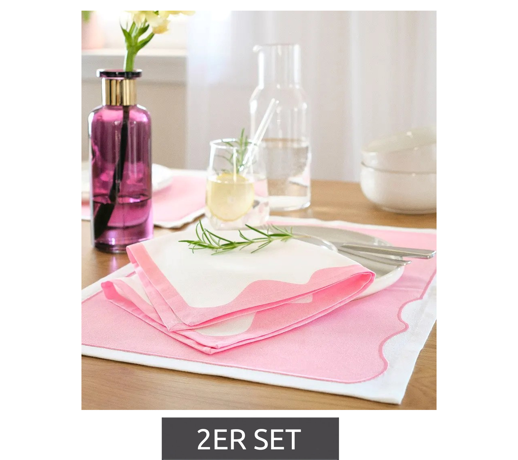 2er Tischsets aus Bio Baumwolle mit farbiger Kante Wohn-Dekoration Tischschmuck 30x40cm 931860 Weiß/Rosa