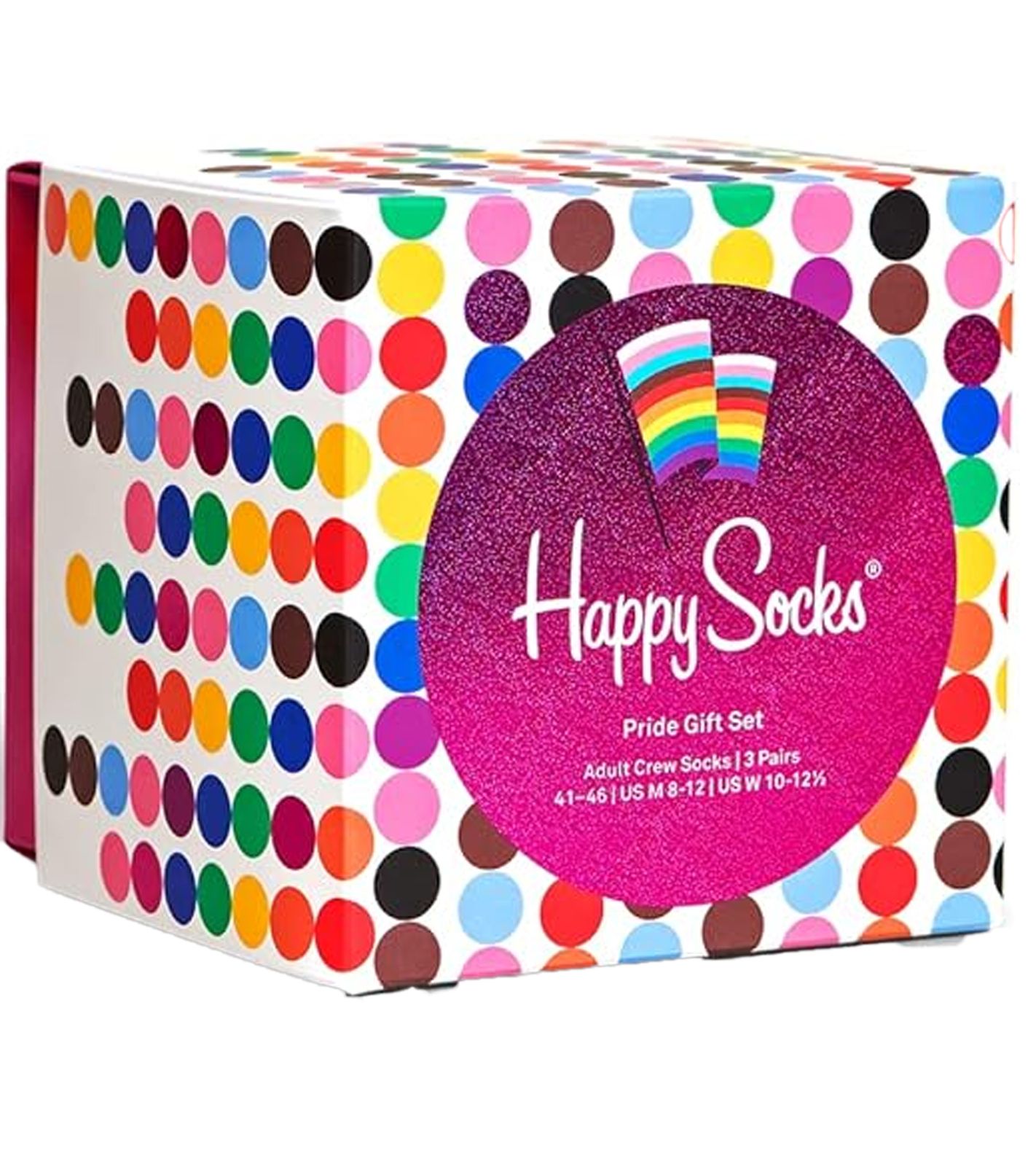 3 Paar Happy Socks Pride Damen Baumwoll-Socken Sparpack LGBTQ-Socken Alltags-Strümpfe in Geschenk-Box XPRD08-1300 Weiß/Bunt
