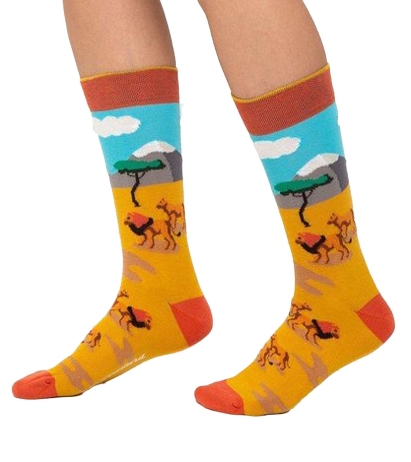 3 Paar Moustard Lion Baumwoll-Socken mit Löwen in der Steppe gemusterte lange Strümpfe 19S-LION Gelb/Blau/Orange