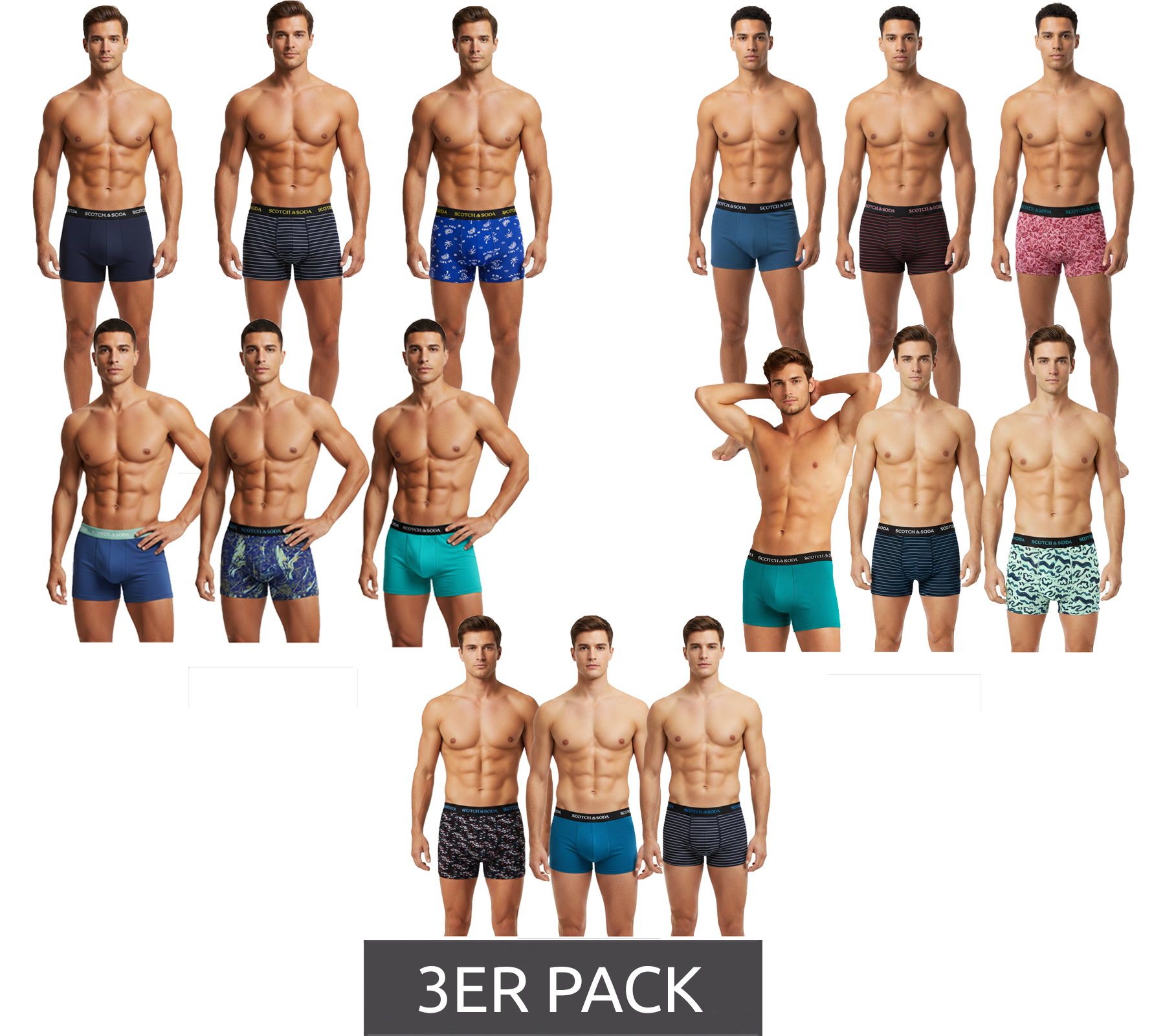 3er Pack SCOTCH & SODA Herren Boxershorts mit Baumwoll-Stretch Unterwäsche Unterhose Blau, Bunt, Schwarz, Rot