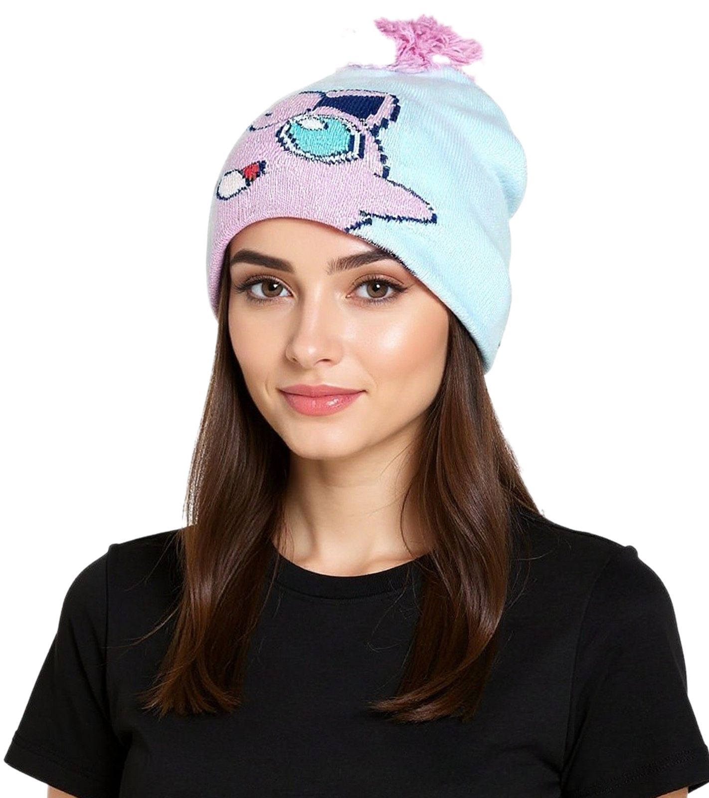 3er Sparpack POKEMON Beanie mit Bommel im Pummeluff Design Gaming-Mütze Strick-Beanie Fan-Artikel KC160211POK Blau/Rosa