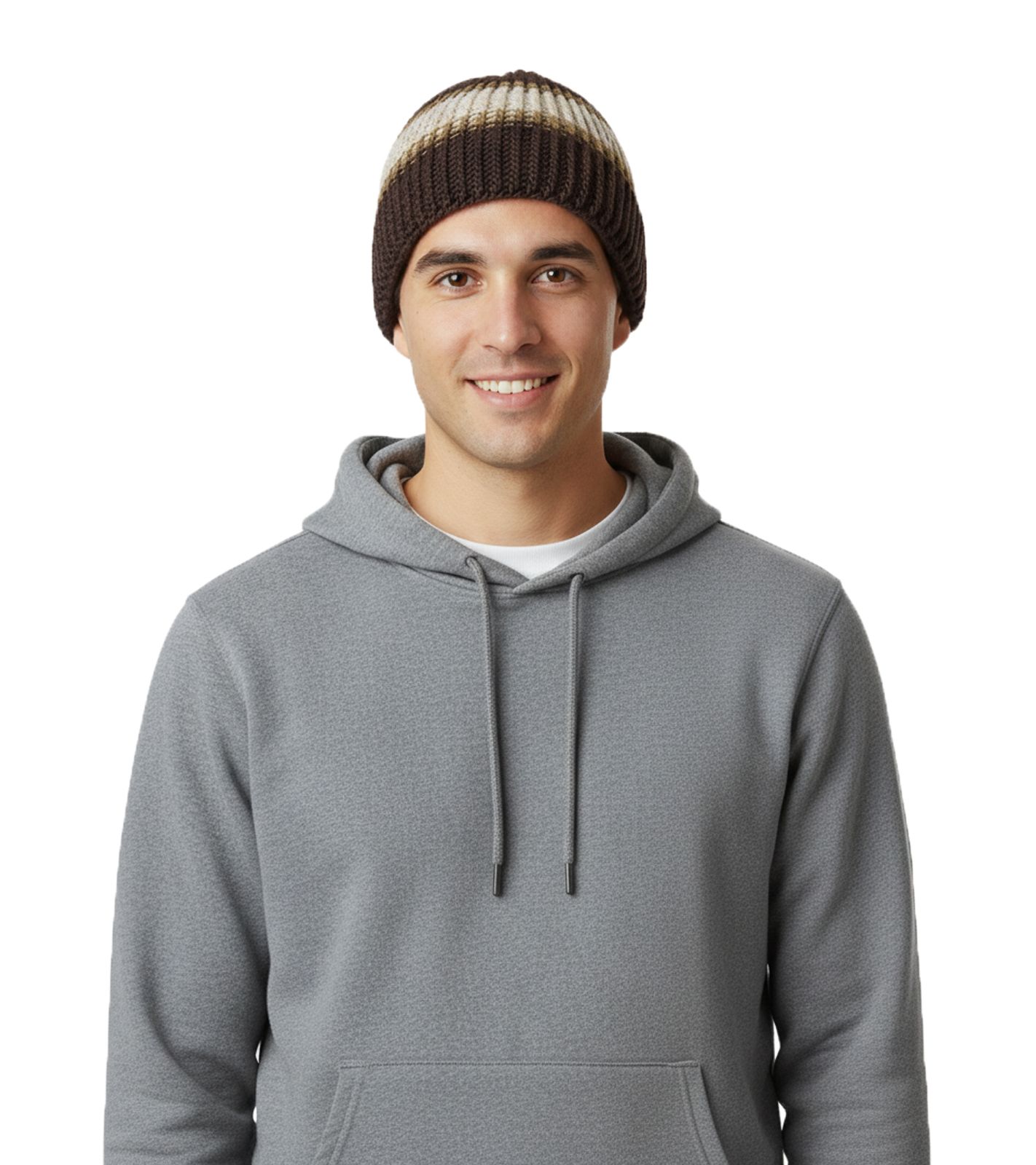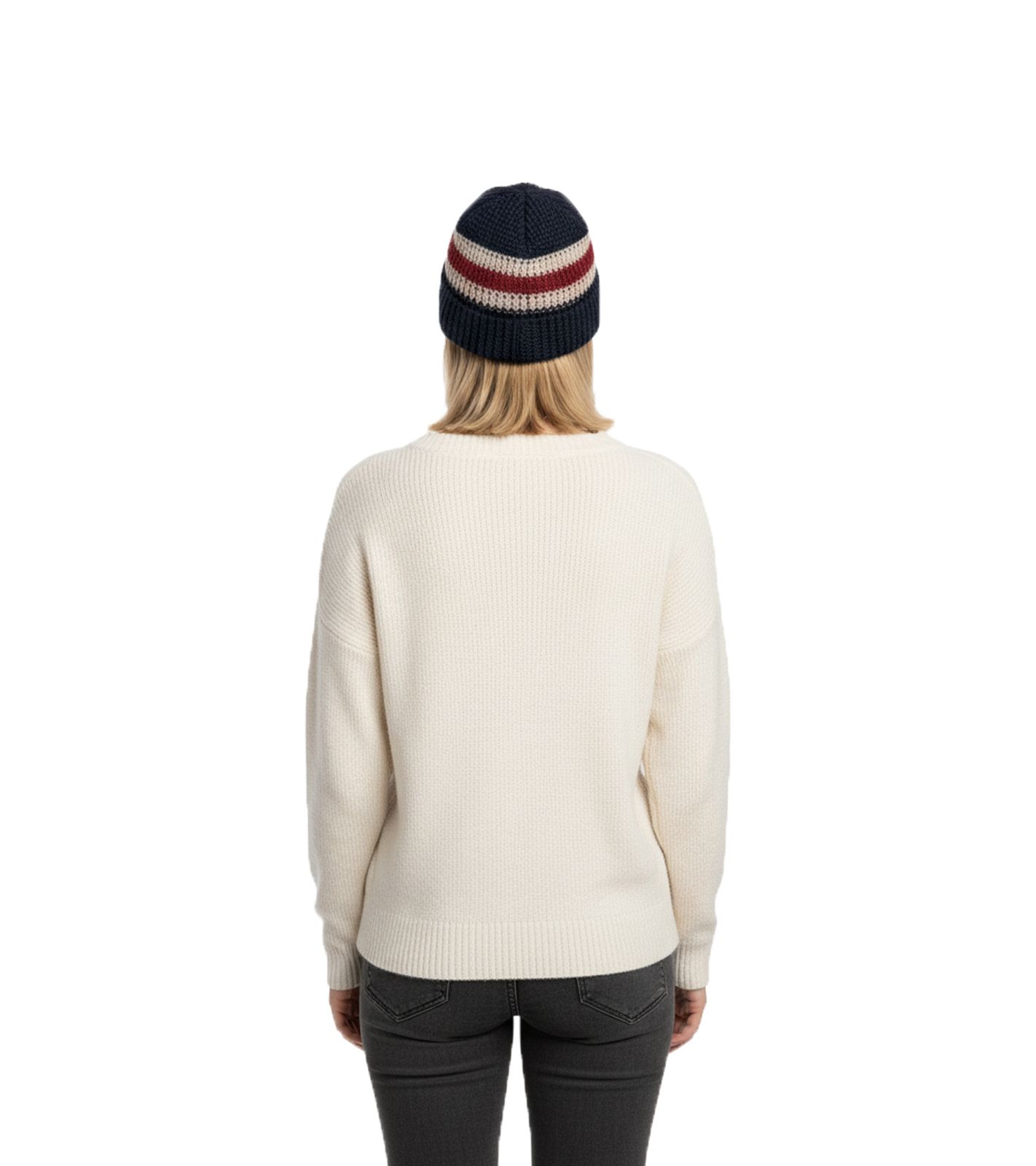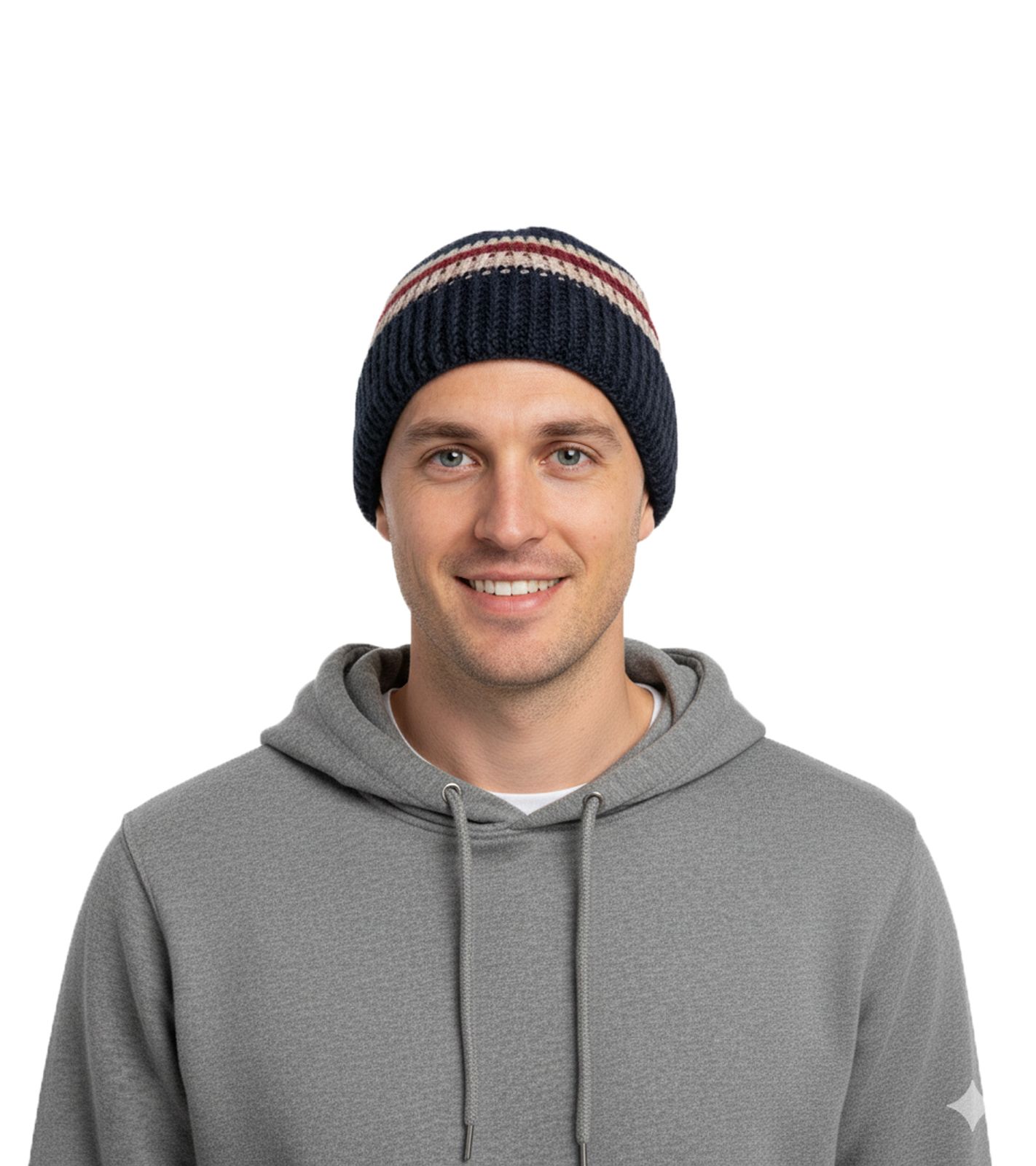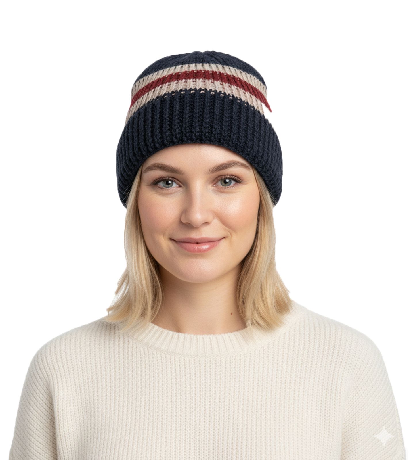 3er Sparpack Trust Co Unisex Häkel-Mütze Winter-Mütze weiche Strick-Mütze mit Streifen Baumwoll-Mütze Navy/Weiß, Braun/Weiß, Khaki/Weiß oder Navy/Rot