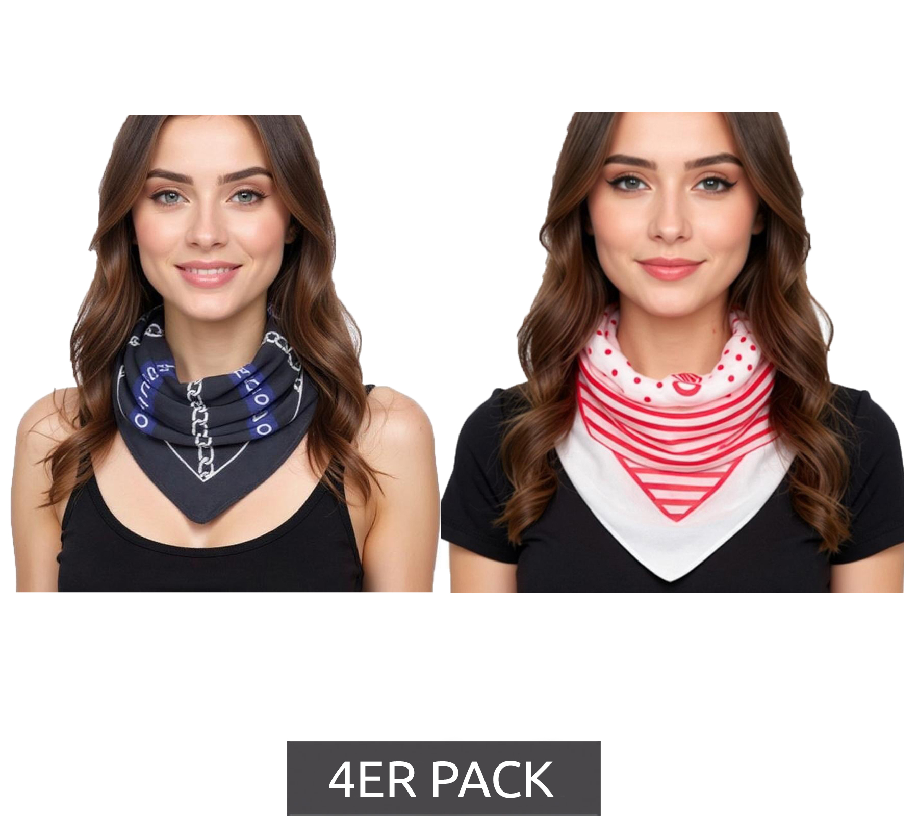 4er Pack DELMAO Halstuch mit verschiedenen Mustern Alltags-Tuch 8168 3644 Weiß/Schwarz/Rot