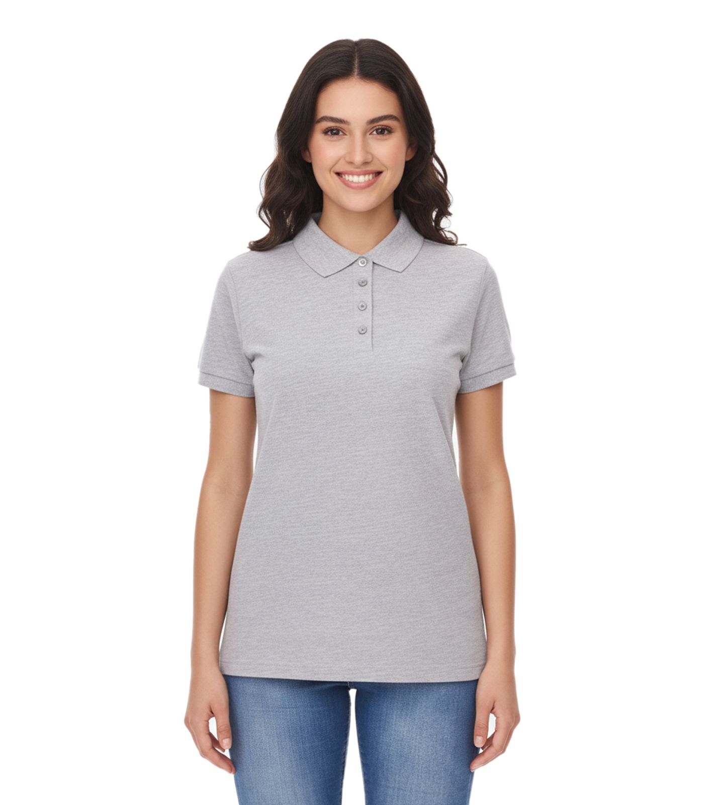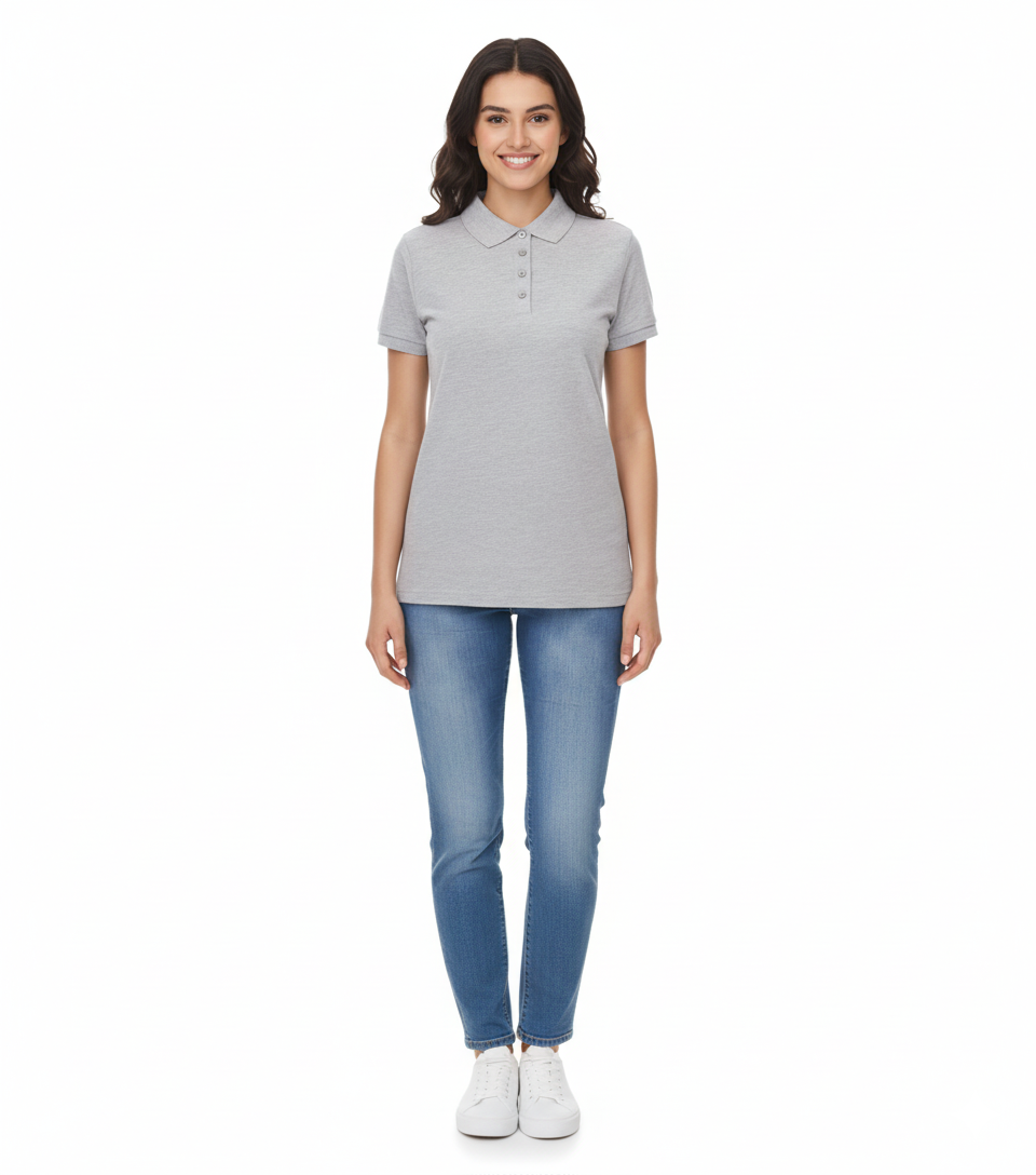 5er Sparpack SANTINO Mika Damen Polo-Shirt aus Bio-Baumwolle Polo-Hemd mit 4er Knopfleiste Kurzarm-Shirt meliert 210 gr/m2 Grau