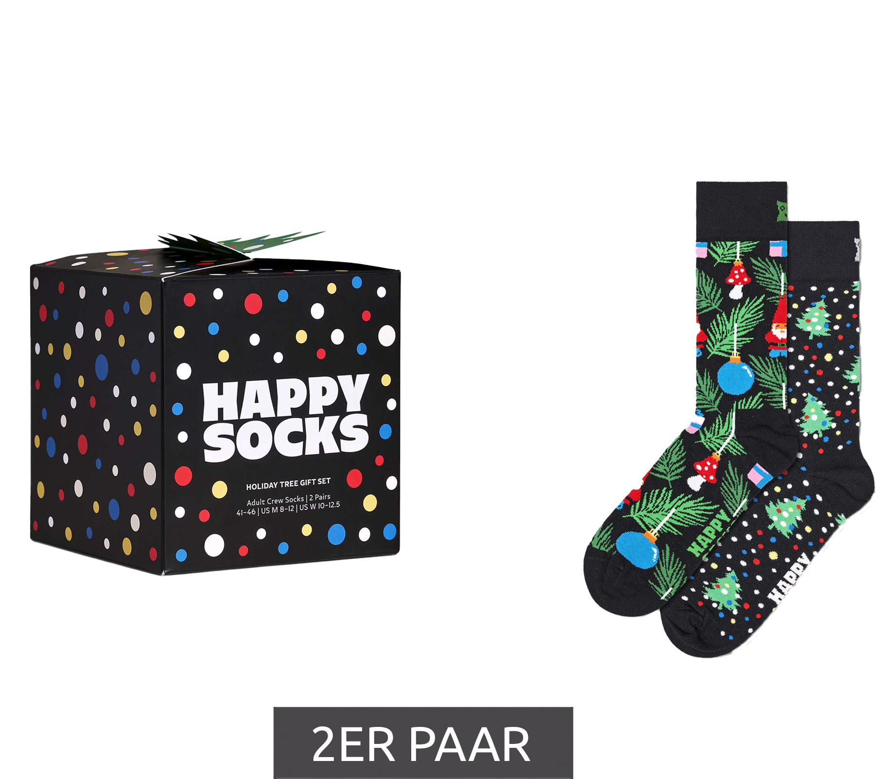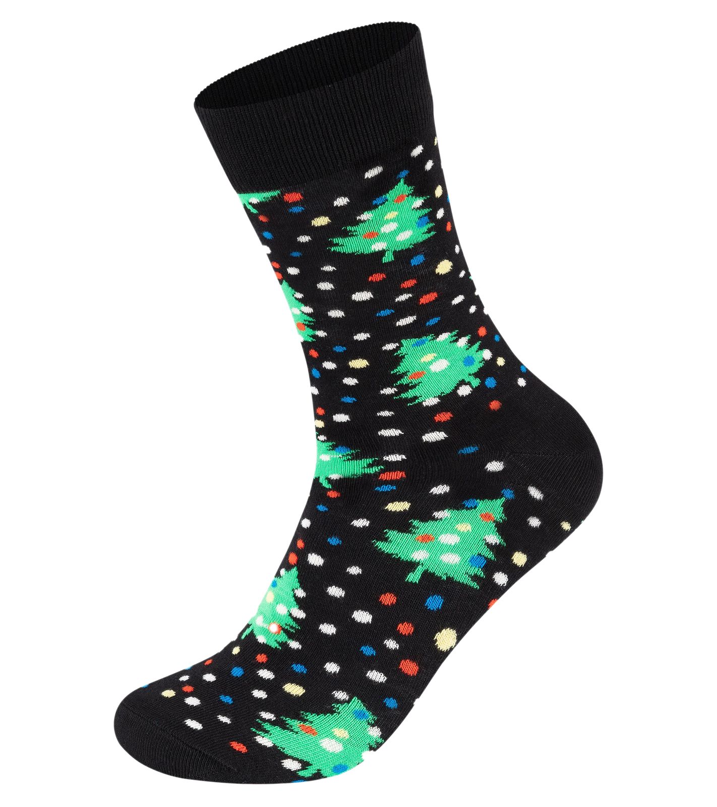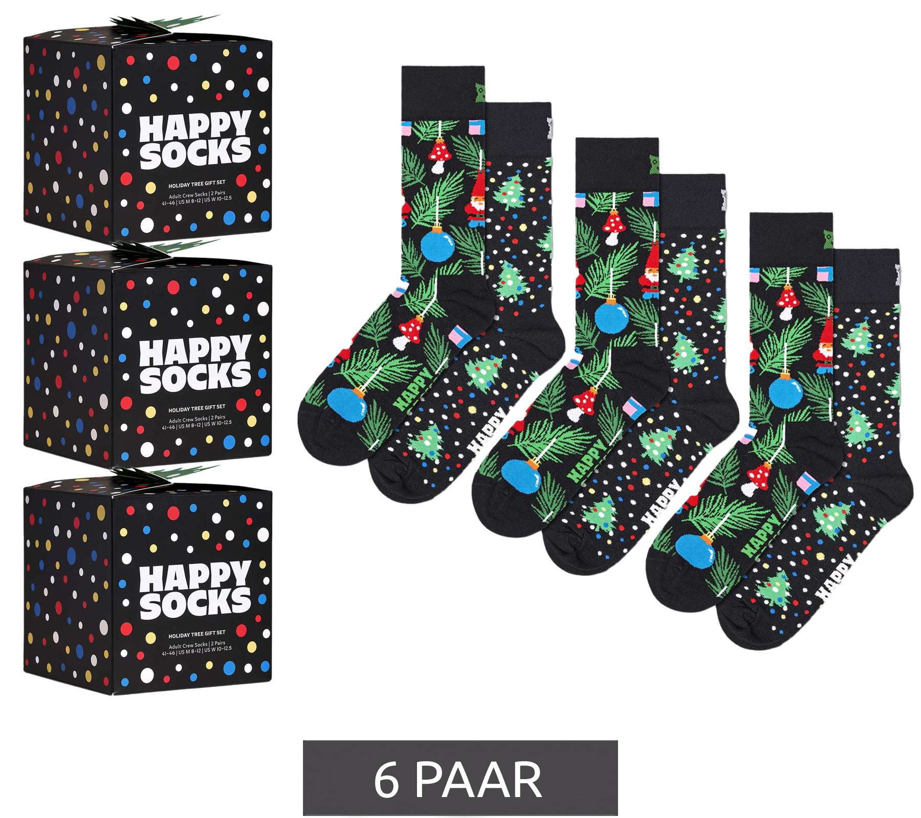 6 Paar Happy Socks Baumwoll-Socken Sparpack im weihnachtlichen-Design Alltags-Strümpfe in Geschenk-Box Sparpack für Damen oder Kinder P001737 Schwarz/Grün/Rot