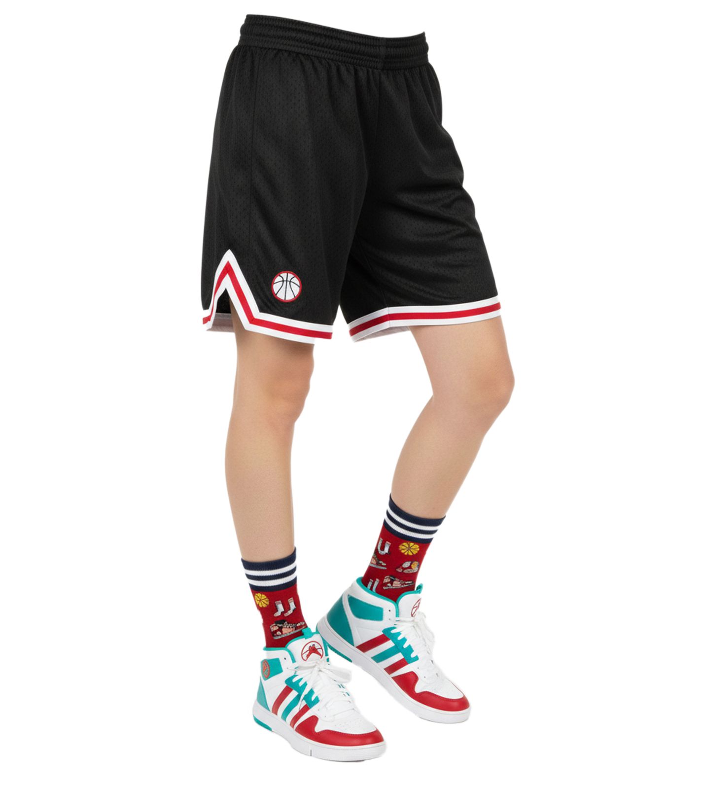 1 Paar Moustard Basketball Baumwoll-Socken mit Basketball Motiven gemusterte lange Strümpfe 17S-BASKET Rot/Schwarz/Bunt