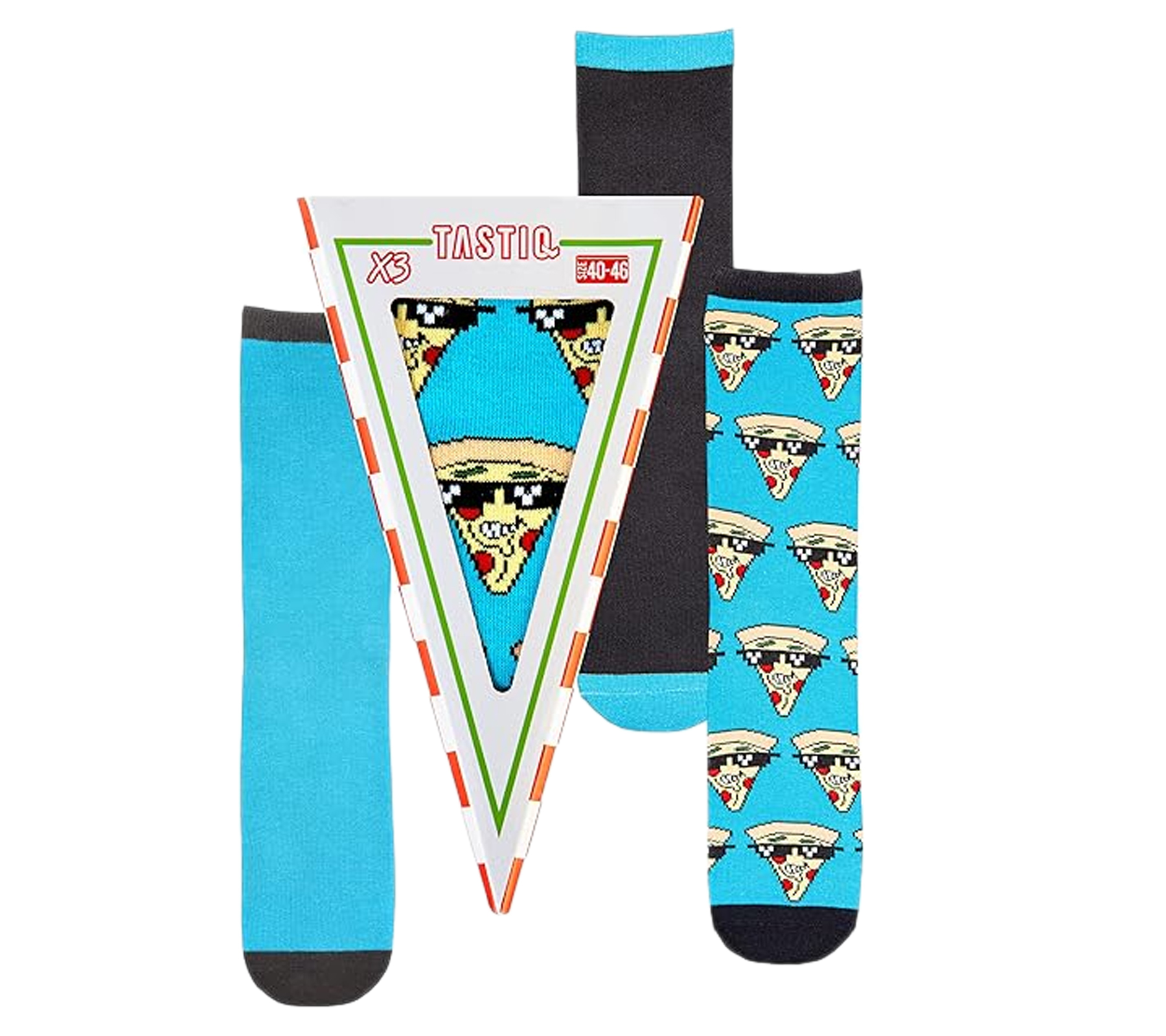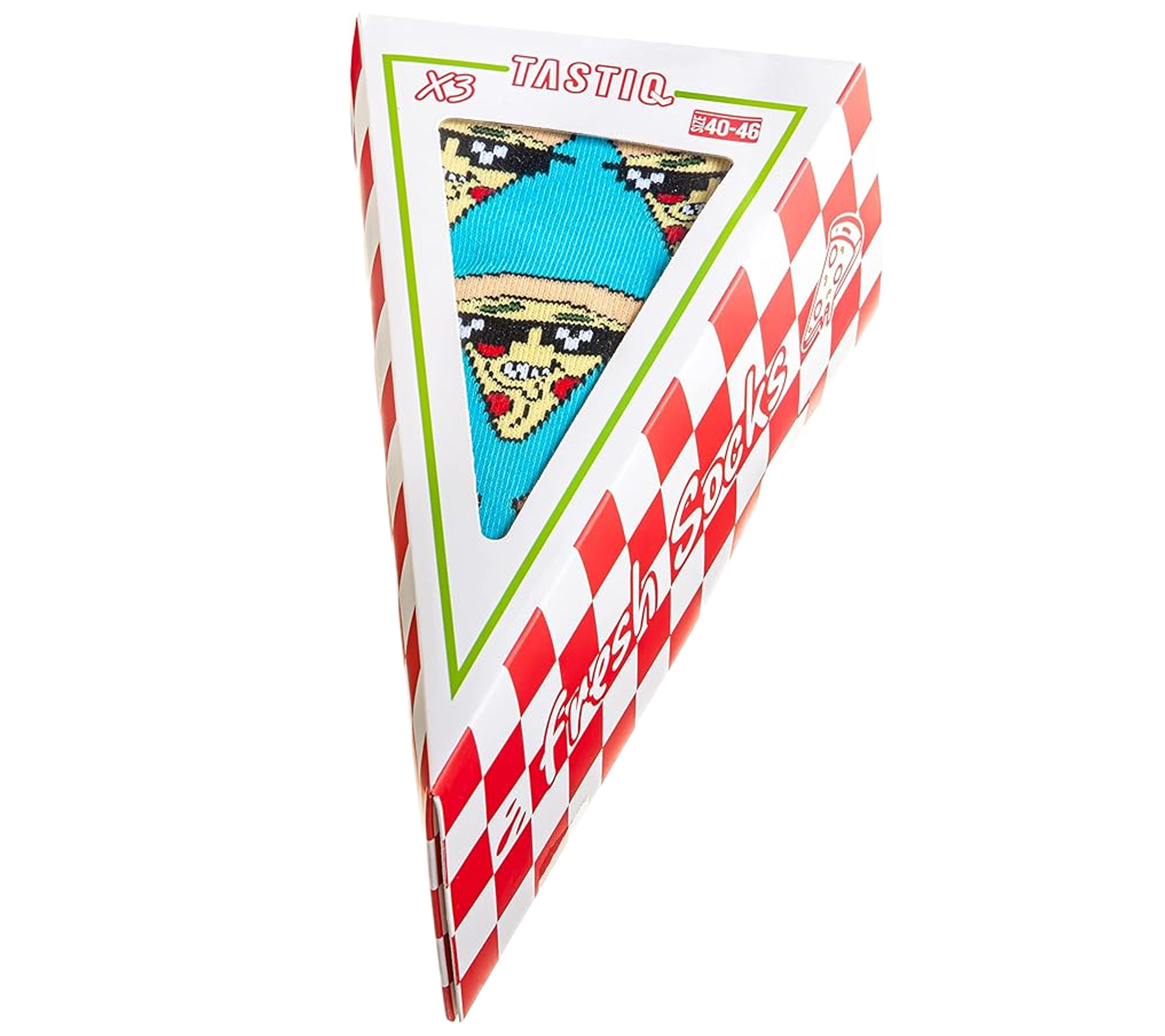 6 Paar TASTIQ Baumwoll-Socken mit Pizza-Print lange Strümpfe in stylischer Pizza-Geschenkbox fresh Socks Tas/1/CSX3/PIZ Blau/Schwarz/ Gelb