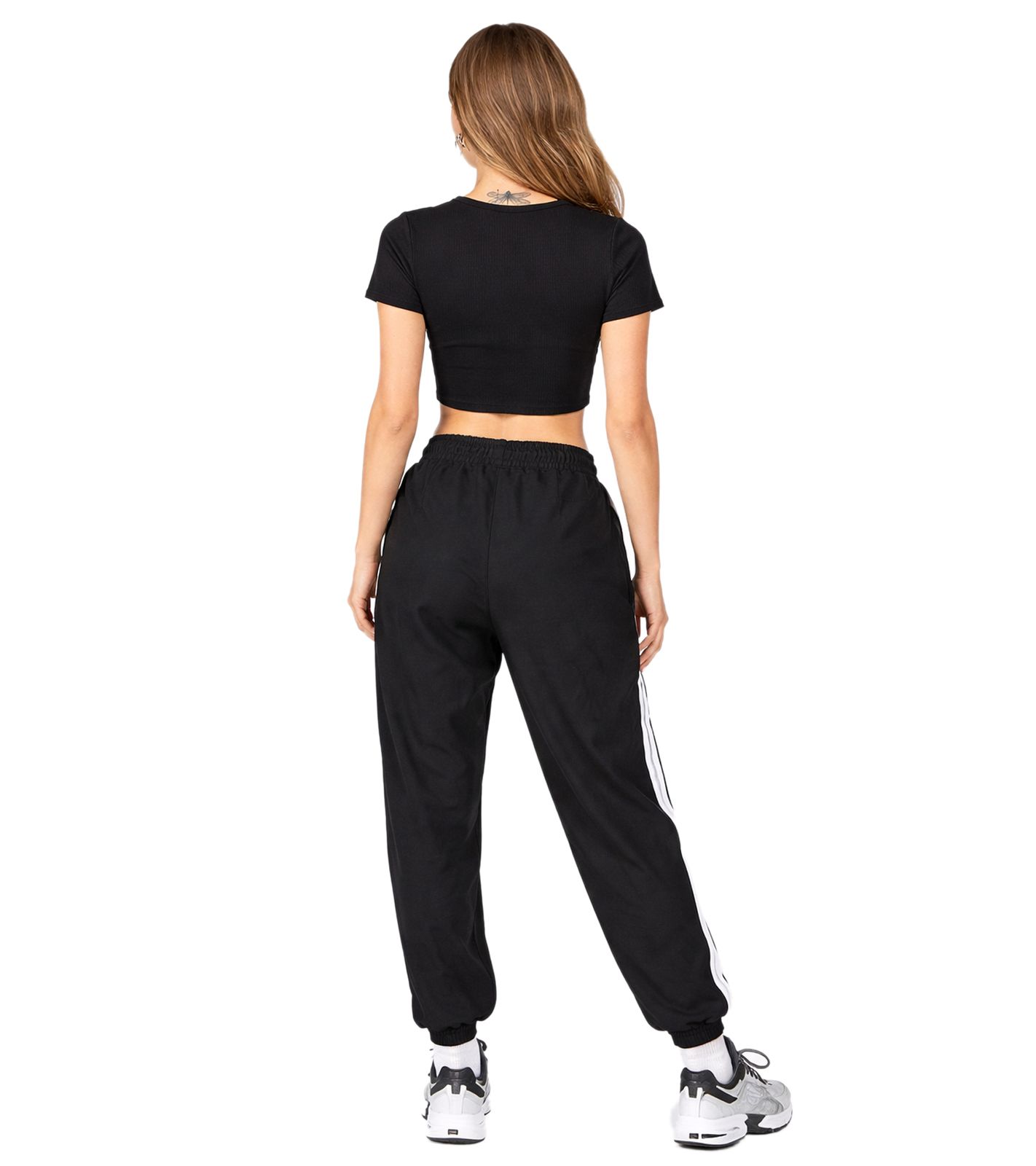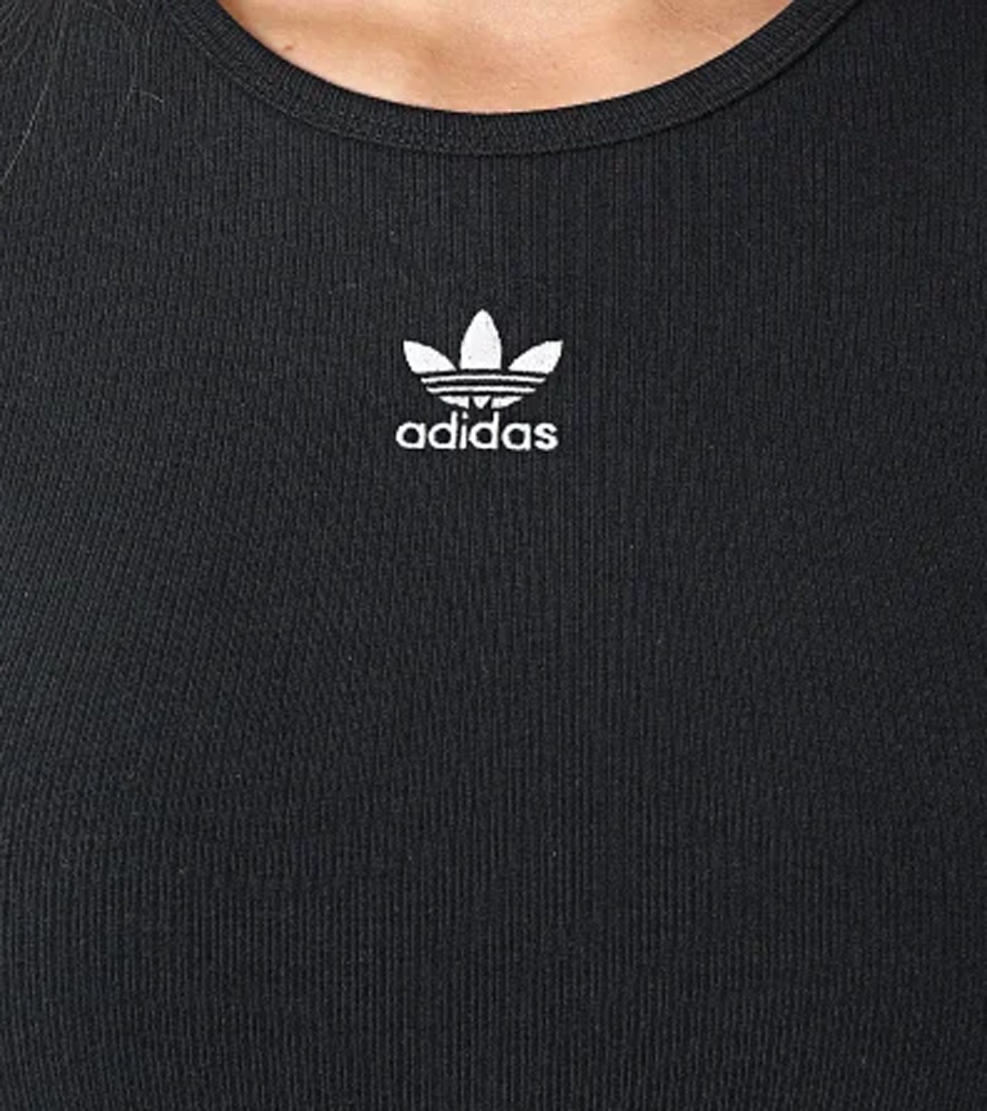 adidas Damen Rippstrick-T-Shirt Crop-Top mit gesticktem Logo Baumwoll-Shirt II8057 Schwarz