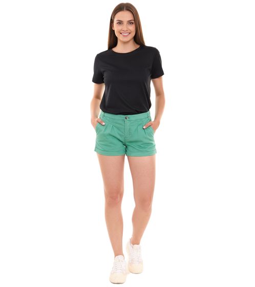 AjC Damen Hot-Pants mit Bügelfalten Chino-Shorts mit fixiertem Umschlag Sommer-Shorts 83031904 Grün