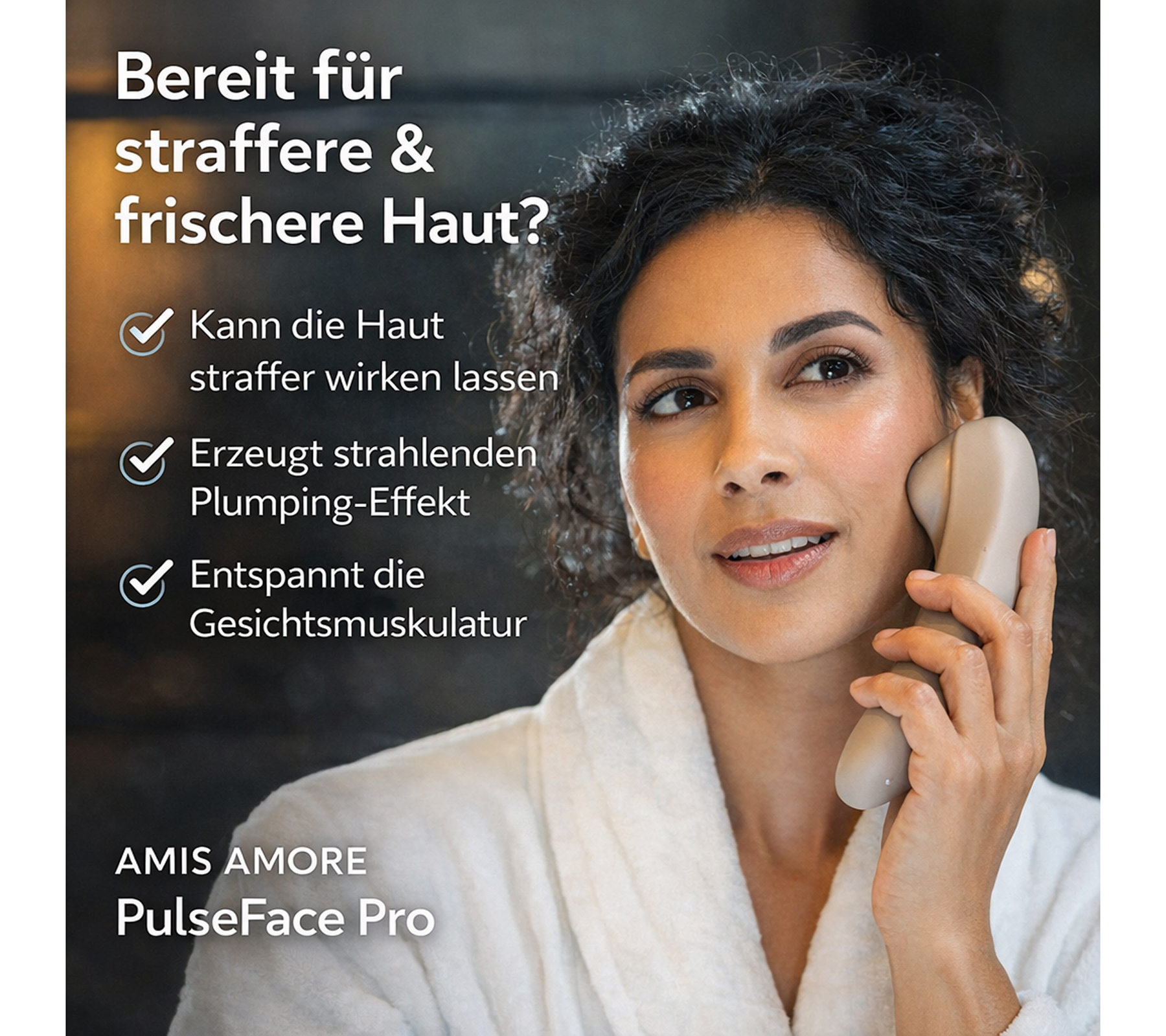 Der AMIS AMORE PulseFace Pro ist ein modernes Beauty-Gerät für die kosmetische Gesichts- und Halspflege. Er kombiniert sanfte elektrische Puls- und Massageimpulse mit einem hautfreundlichen Silikonkörper und eignet sich ideal für die tägliche Beauty-Routine zu Hause. Die Anwendung kann das Hautgefühl beleben, die Gesichtsmuskulatur entspannen und für ein frischeres, gepflegtes Erscheinungsbild sorgen.