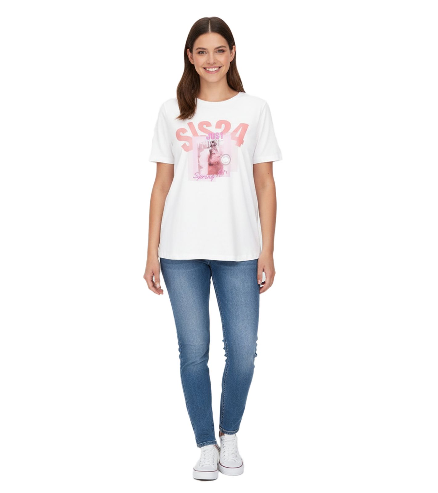 Aniston CASUAL T-Shirt Damen Baumwoll-T-Shirt mit SIS24 Schriftzug Kurzarm 85719030 Ecru-Weiß