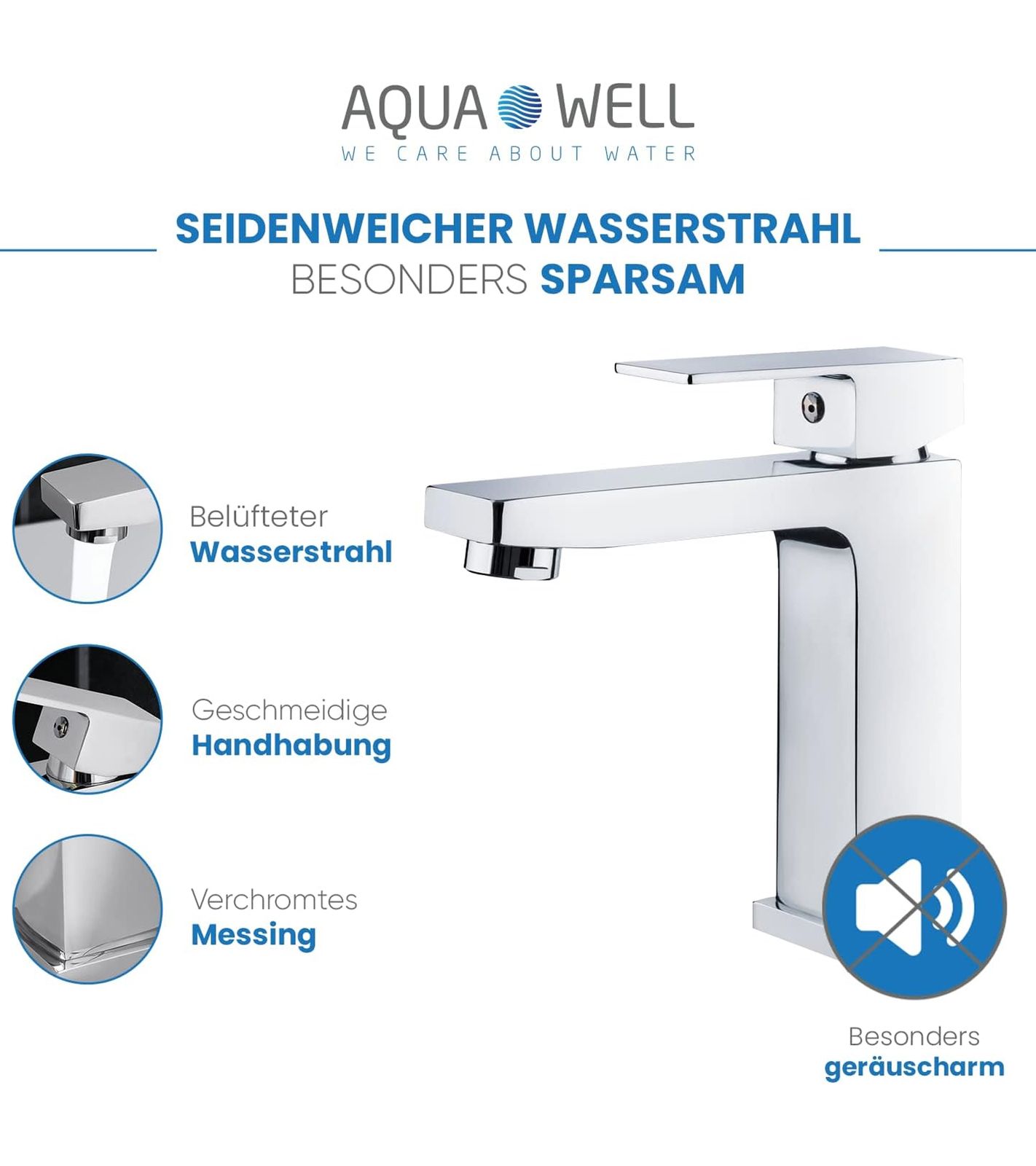 - Schmücken Sie Ihr Waschbecken mit der Premium-Waschtischarmatur von Aqua Well! Das moderne Design in Kombination mit der glanzvollen Chromoberfläche lässt Ihr Bad strahlen