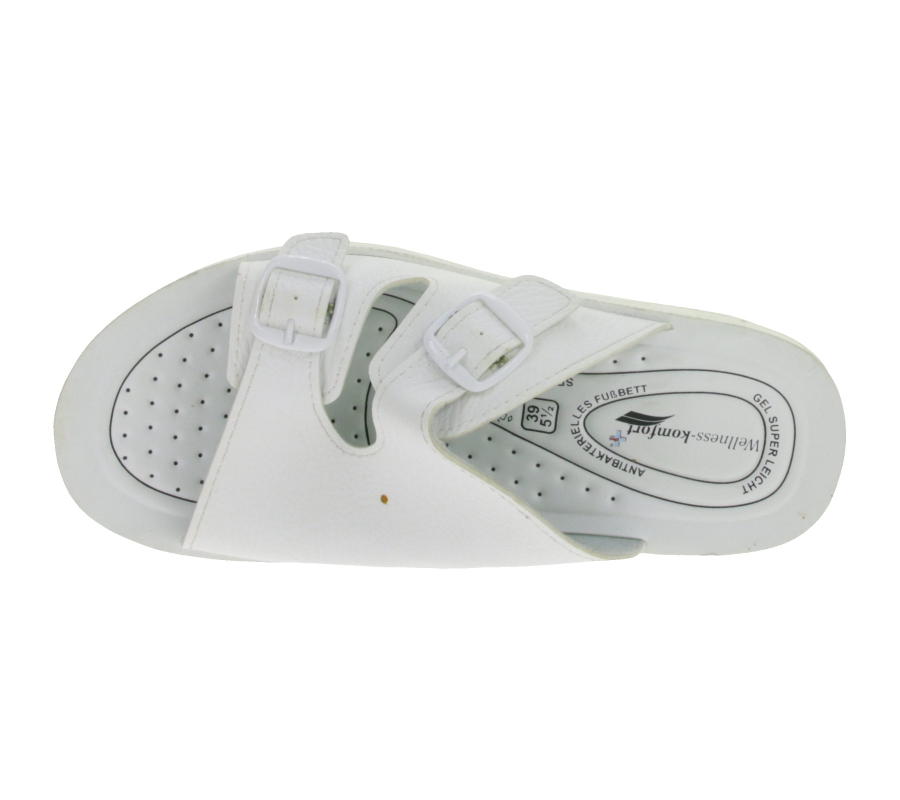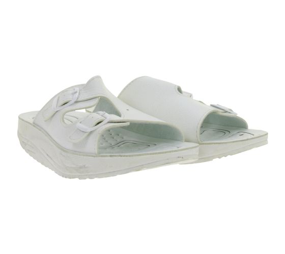 Aufbauende hsm Damen Gesundheits-Sandalen mit Abroll-Effekt Pantoletten mit selbstmodellierendem, antibakteriellem Gel-Fußbett Latschen Factory Second B-Ware Weiß