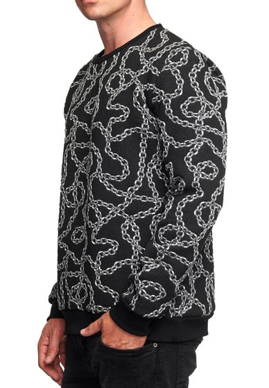 Ausgefallenes Sweatshirt für Herren mit Muster im Ketten-Design Rundhals-Pullover 19141 Schwarz