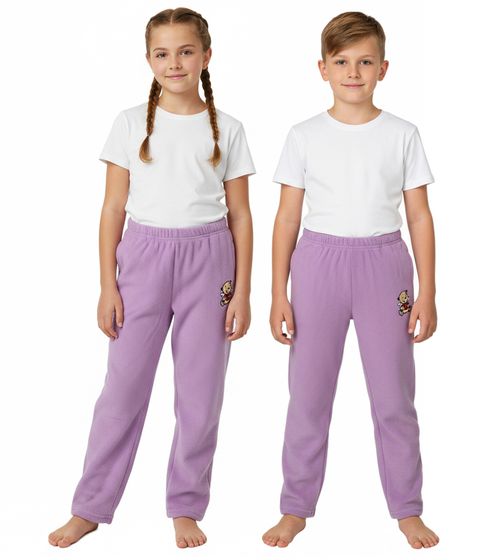 Bequeme STEINBECK Kinder Kuschel-Hose für Jungen oder Mädchen aus Mikrofleece Jogginghose mit schöner Applikation Sweat-Hose Rosa