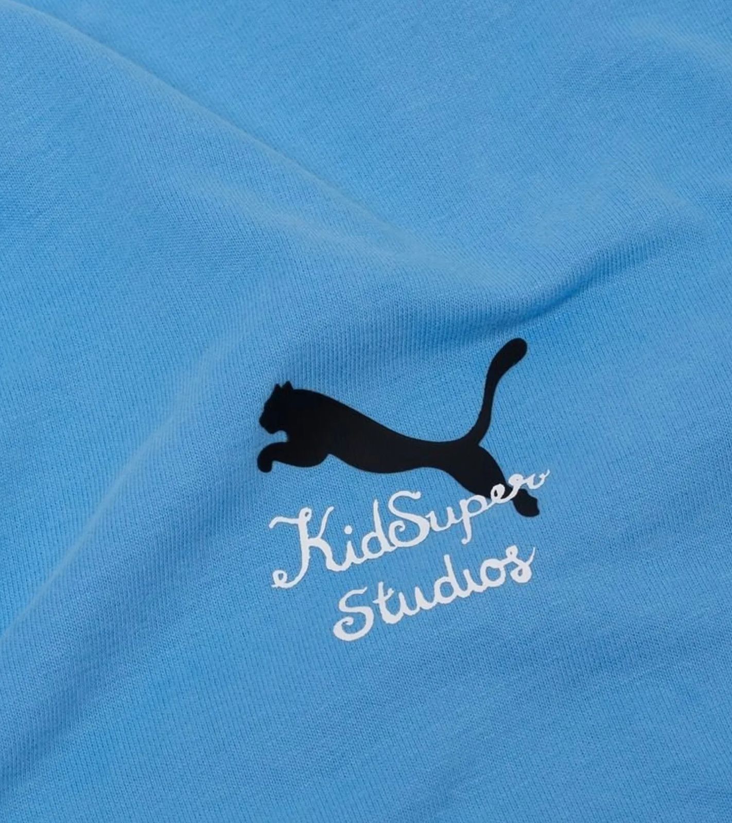 - Auf der Vorderseite prangt das Manchester City Wappen, das PUMA Cat Logo und der Schriftzug „KidSuper Studios“