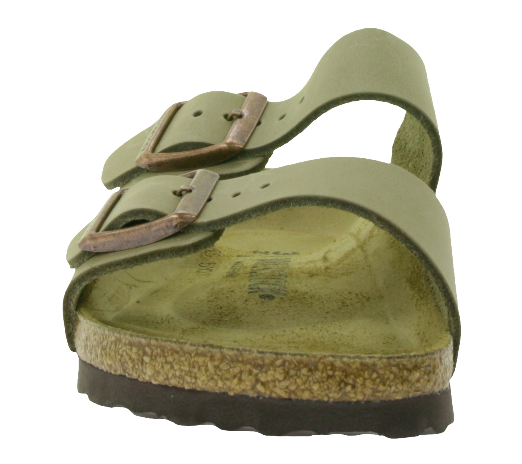 BIRKENSTOCK Arizona Nubukleder-Schlappen Damen und Herren Pantoletten Made in Germany schmale Breite Weichfußbett 352203 oder 1027039 in Braun oder Khaki