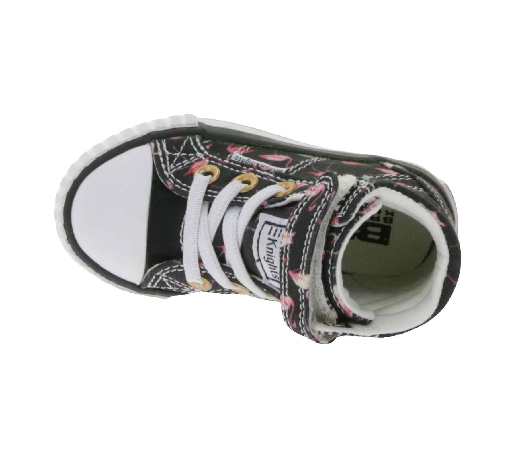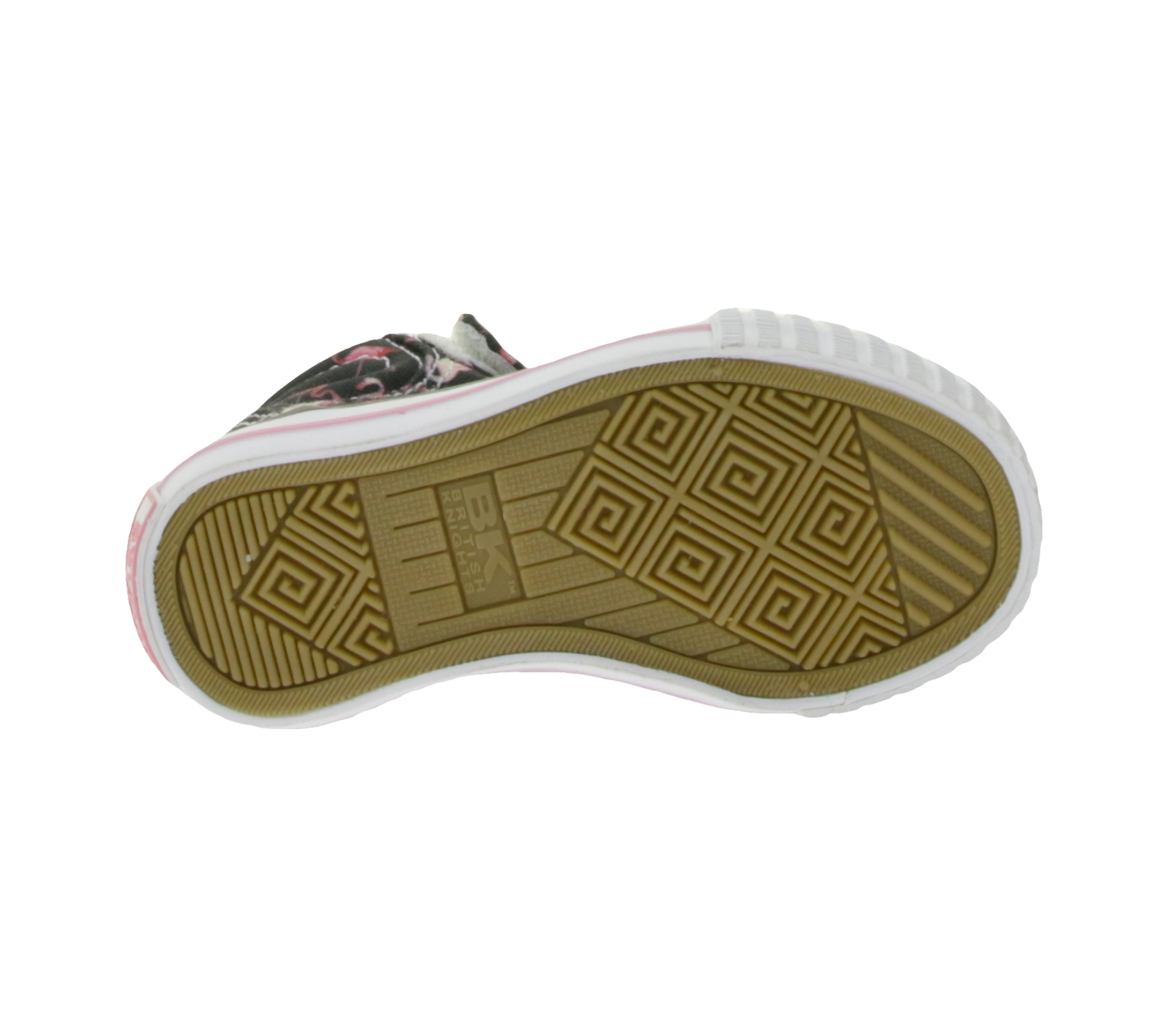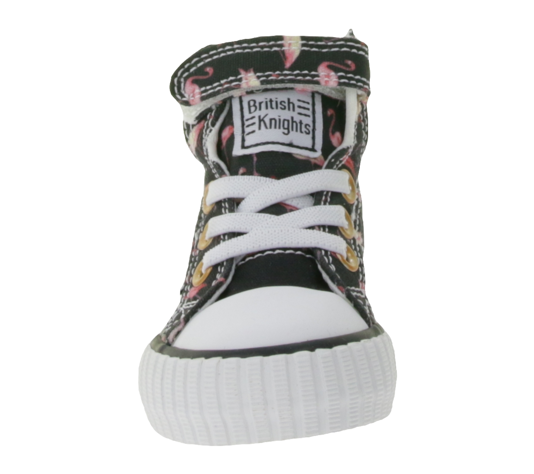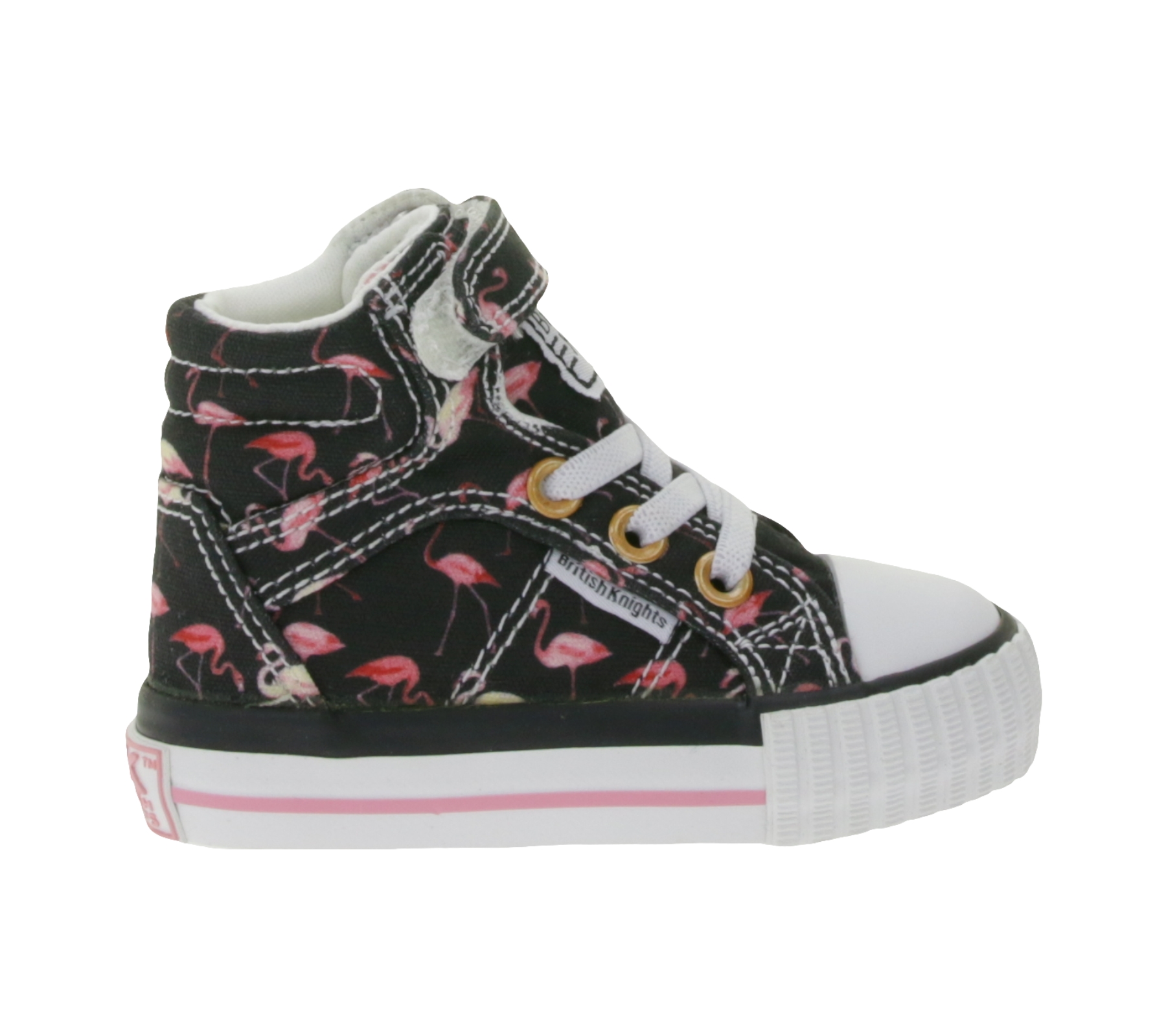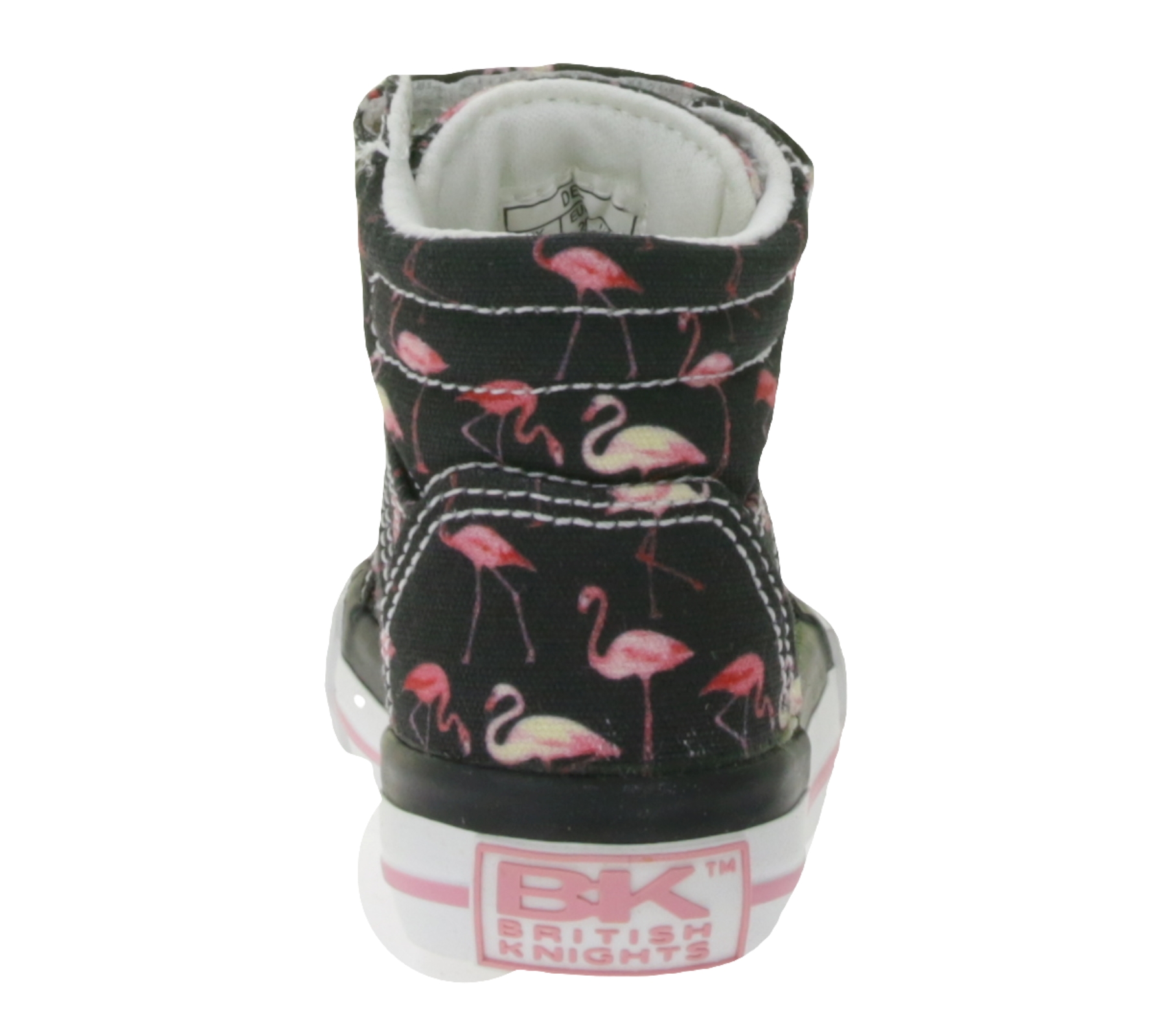 BRITISH KNIGHTS Dee Kleinkinder Mid-Top Sneaker mit Flamingos Mädchen Schnür-Schuhe mit verstärktem Zehenbereich B49-3733I-01 Schwarz/Pink/Weiß