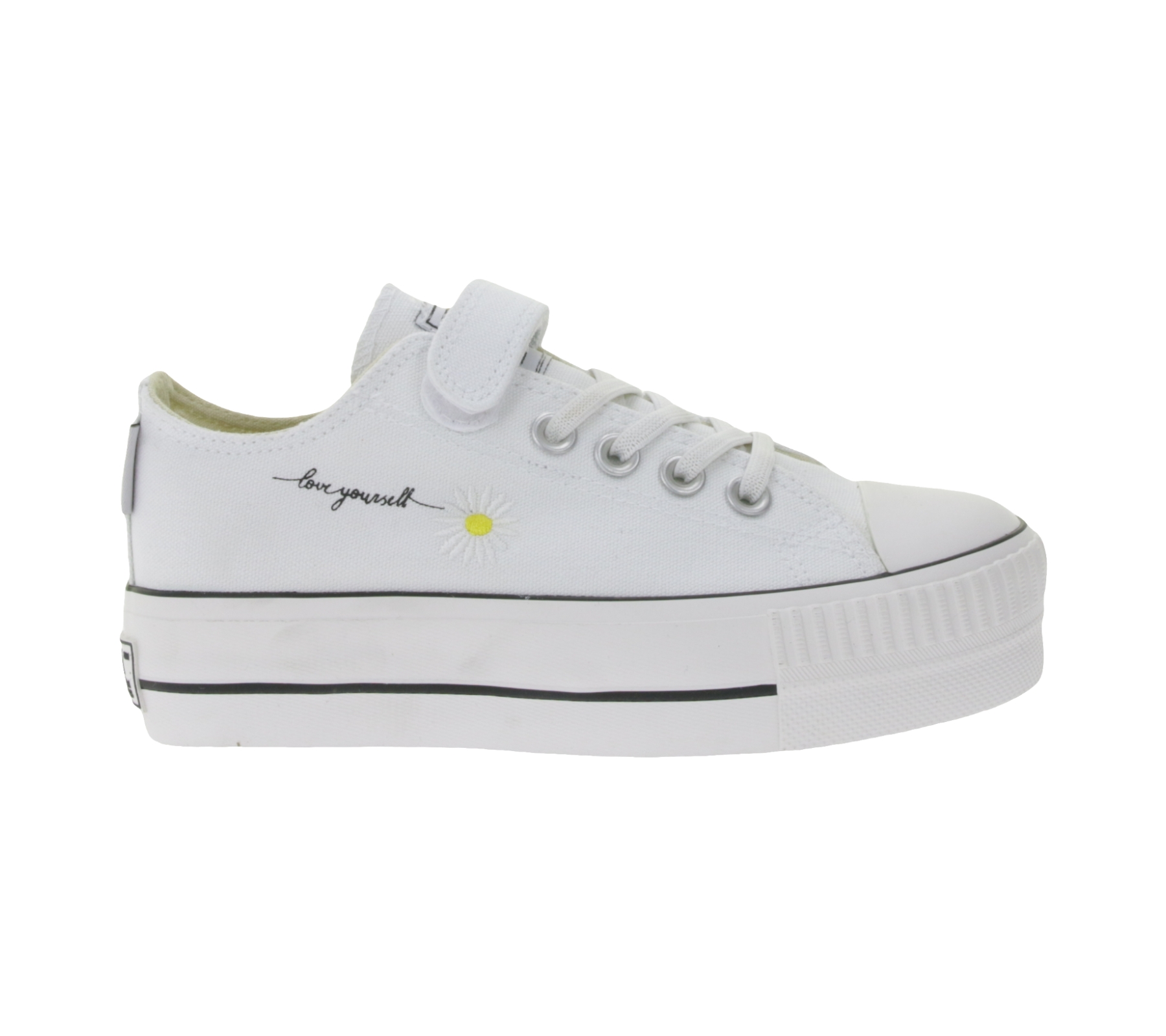 BRITISH KNIGHTS Kaya Low Damen Low-Top Canvas-Sneaker mit Blumen-Stickerei und LoveYourself-Print Schnür-Schuhe B49-3706C-01 Weiß