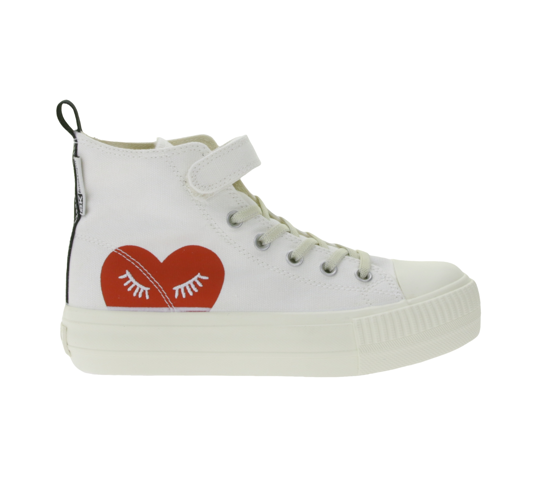 BRITISH KNIGHTS Kaya Mid Kinder Mid-Top Canvas-Sneaker mit dekorativem Herz-Print Schnür-Schuhe Teenager Mädchen B52-3705C-03 Creme-Weiß
