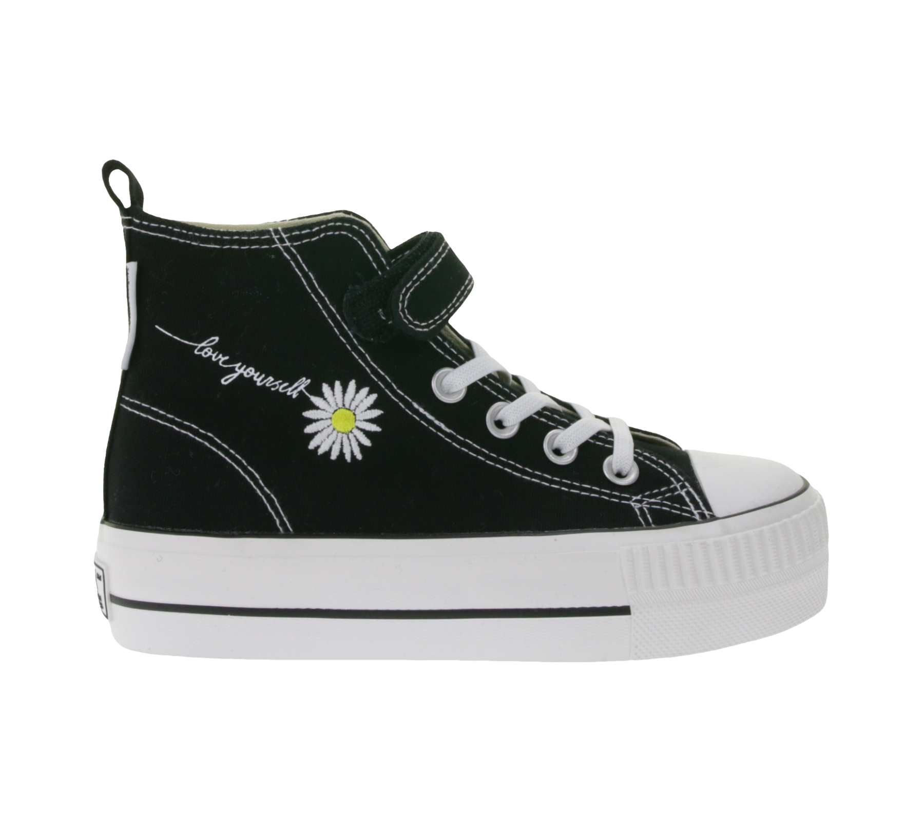 BRITISH KNIGHTS Kaya Mid Kinder Mid-Top Canvas-Sneaker mit dekorativer Blumen-Stickerei & Loveyourself-Print Schnür-Schuhe Teenager Mädchen B49-3710C-01 Schwarz