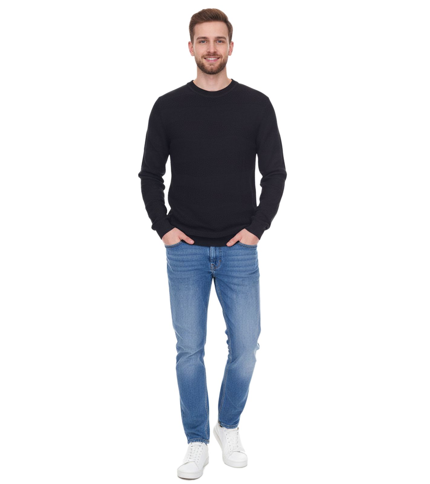 Denim Project Herren Strick-Pullover mit dezenter Musterung Baumwoll-Pullover Winter-Pullover Langarm-Shirt DP-10023-073 001 Schwarz