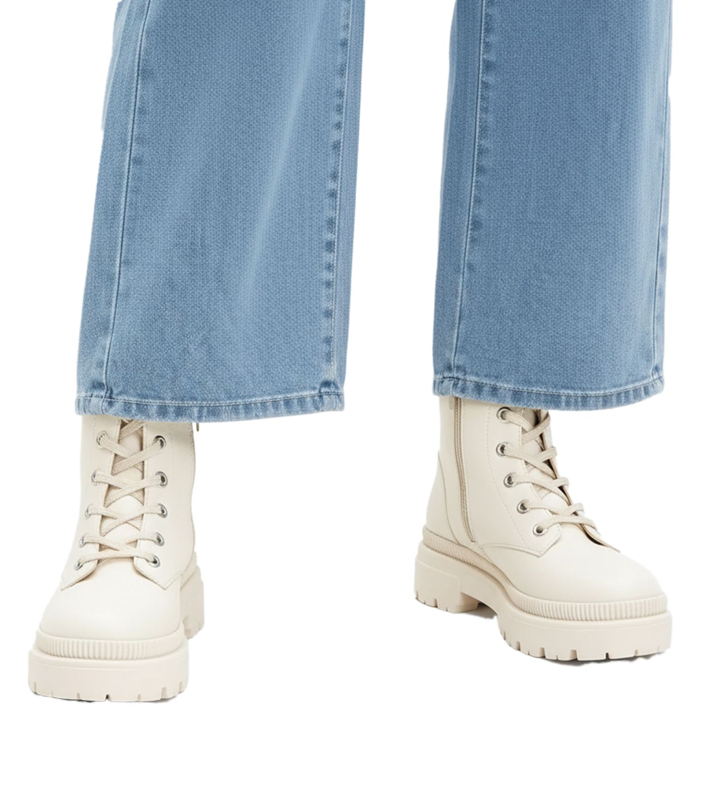 derbe Damen Winter-Stiefel Combat-Boots mit kleinem Plateau Schnür-Stiefelette 930964 Beige