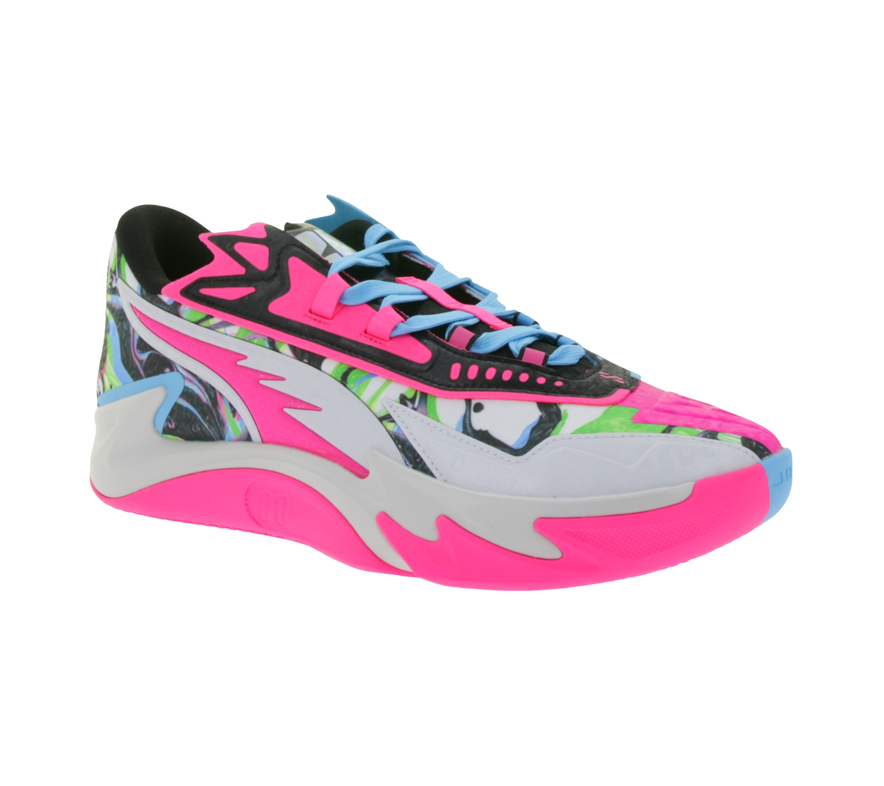 Dynamische PUMA Scoot Zero II NBA 2K oder Stewie 3 Lace Em Up Herren Basketball-Schuhe mit NITRO FOAM und PWRTAPE Damen Hallen-Schuhe Bunt oder Violett