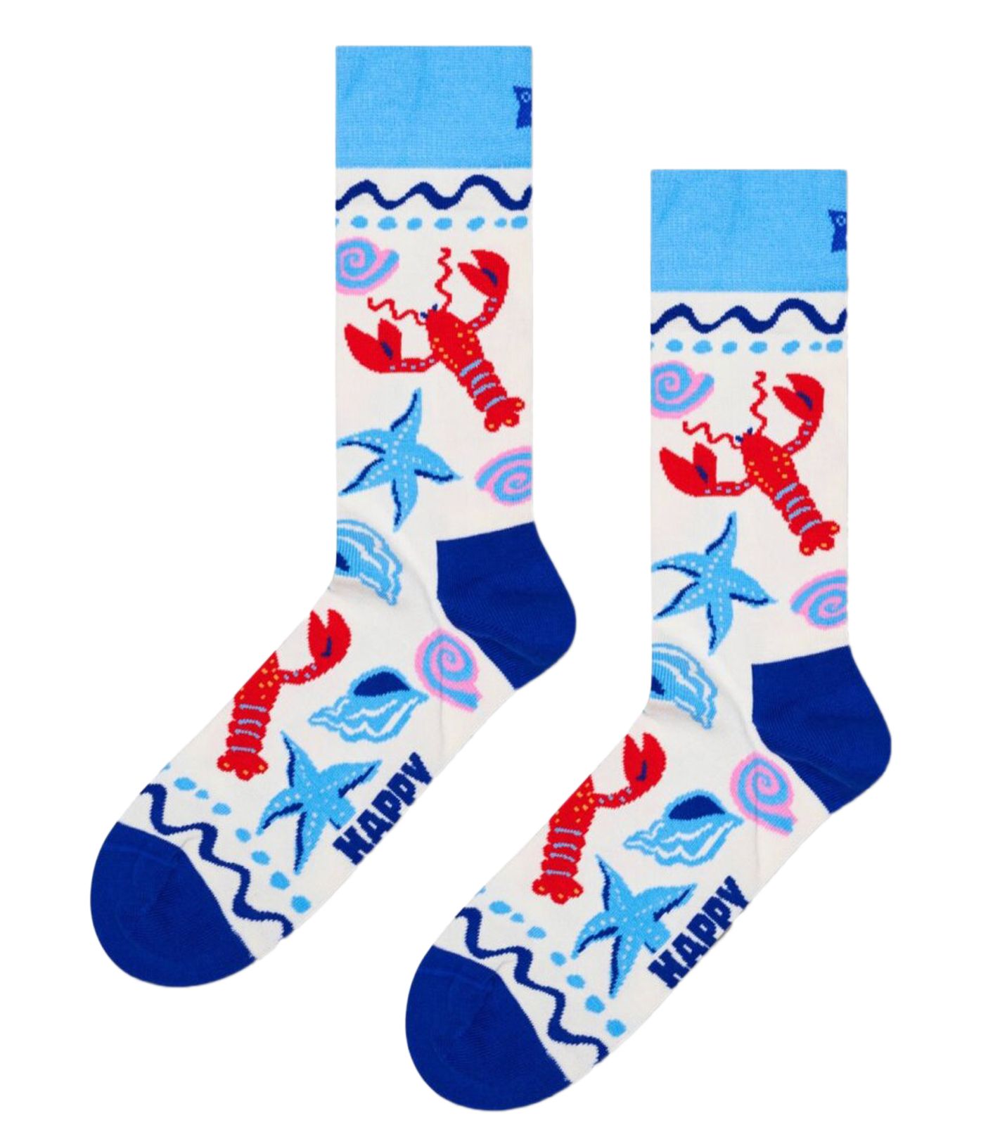 1 Pair of Happy Socks Seafood Unisex Socks with All-Over Seafood Print, Cotton Socks, Everyday Socks, P002572 Ecru-White/Multicolor