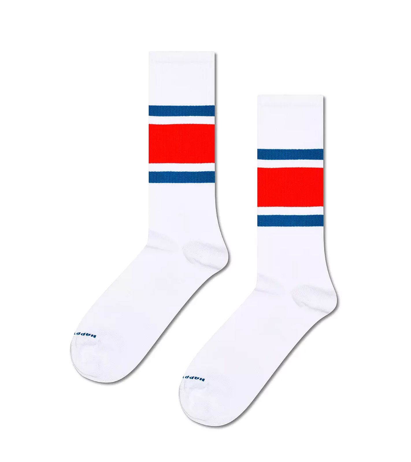 1 Pair of Happy Socks Simple Stripe Men's Striped Cotton Socks, Everyday Socks P002534 White/Red/Blue