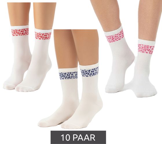 10 Pairs of Comfortable ZWILLINGSHERZ Women's Tennis Socks with Leopard Print - Everyday Socks, Cotton Socks 4603S K248144 White/Pink, White/Red, or White/Blue