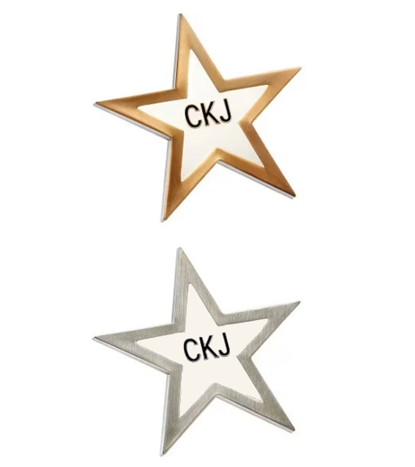 2-Pack Calvin Klein Star-Design Pin-Up Brooches, Stainless Steel Enamel Pin-Ups KJJNDH200, Yellow/Navy/Silver or Silver/Gold/White