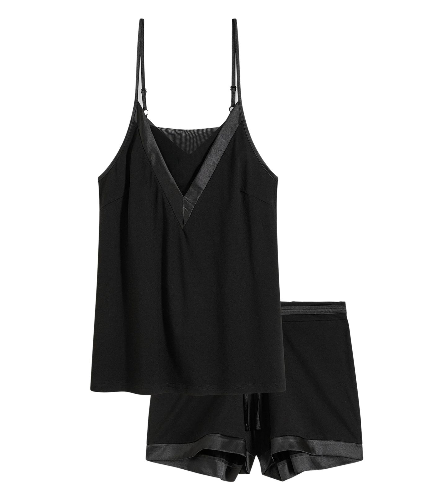 The set consists of a sleeveless tank top and short pajama bottoms – perfect for warmer nights.