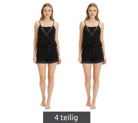2-Pack Elegant Women's Pajamas, 2-Piece Cotton Shorty Set with Satin Trim, Short Sleepwear Set consisting of Top and Bottoms, 936951 Black