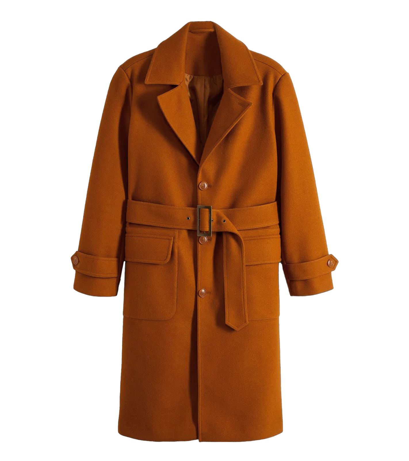 2-pack Men's Wool-Infused Coat, Autumn Jacket with Belt, Long Sleeves, Buttoned Winter Jacket, 936768 Brown